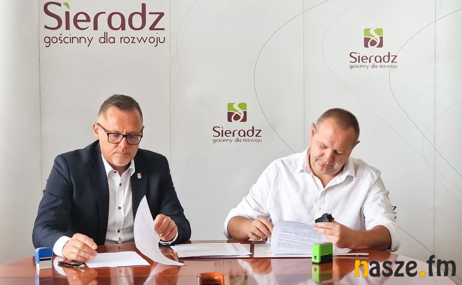 Michał Frankowski pełnomocnik warszawskiej firmy XDISC S.A. oraz Paweł Osiewała, prezydent Sieradza podpisali umowę na wykonanie zamówienia pn. Montaż mikroinstalacji fotowoltaicznych na budynkach użyteczności publicznej w Sieradzu – etap II.