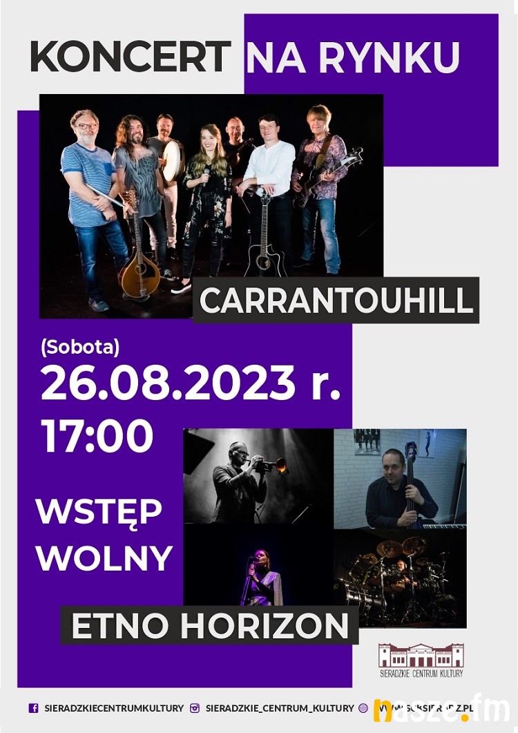 W sobotę na sieradzkim rynku odbędą się kolejne wakacyjne koncerty. Zagrają Carrantuohill i Etno Horizon. Nie zabraknie muzyki irlandzkiej, etno oraz folku. Początek o godzinie 17.