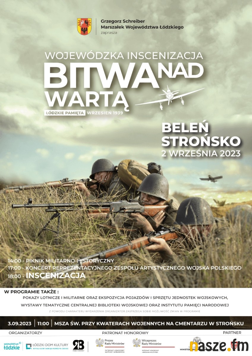 Z kolei w niedzielę, 3 września o godz. 11.00, przy kwaterach wojennych na cmentarzu w Strońsku, odbędzie się uroczysta msza święta w intencji poległych w bitwie nad Wartą. Inscenizację poprzedzi piknik militarno-historyczny podczas, którego wyeksponowana zostanie wystawa pojazdów wojennych i sprzętu bojowego znajdującego się na wyposażeniu Sił Zbrojnych Rzeczypospolitej Polskiej.