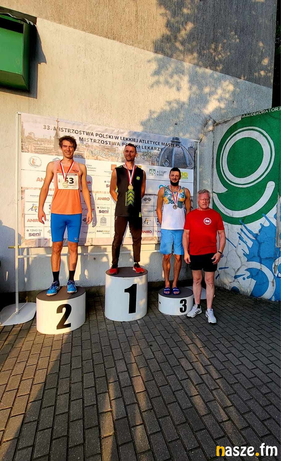 Z dwóch złotych medali cieszył się też Rębacz. Reprezentant Żegliny Sieradz wygrał najpierw na 1500 metrów w kategorii wiekowej M45 (4;29.13), a potem triumfował na 800 metrów (2:11.11).