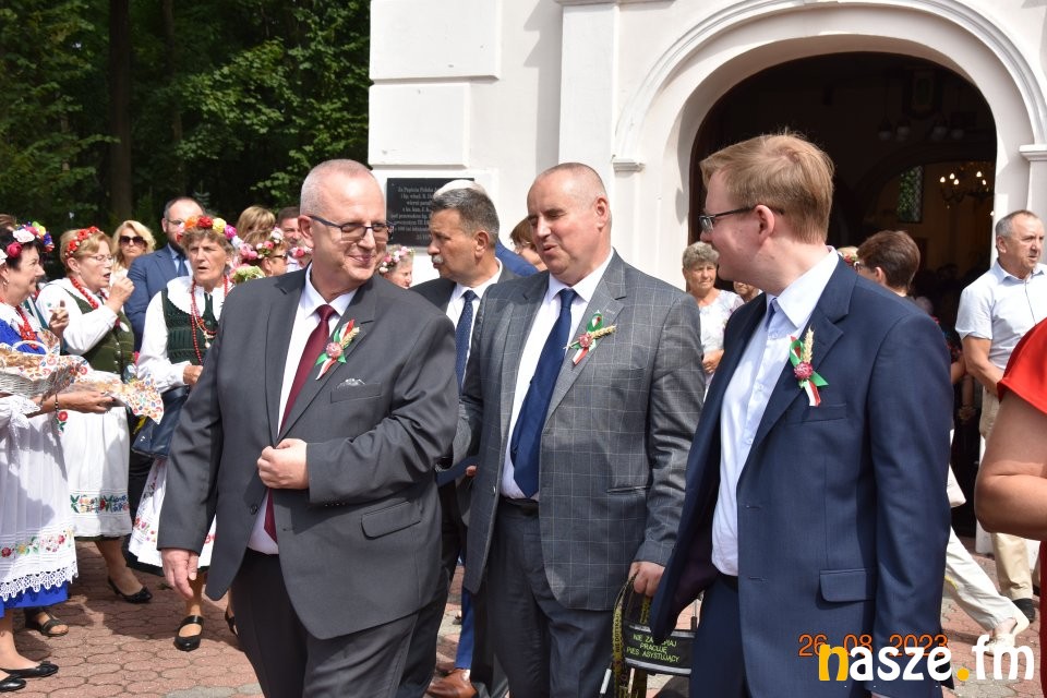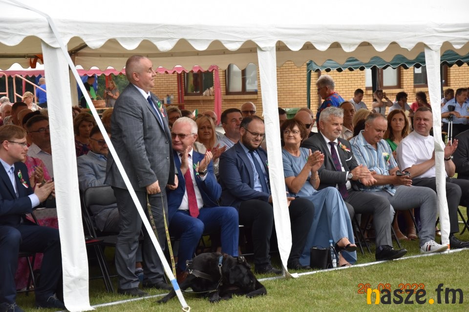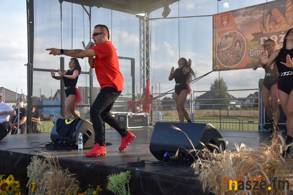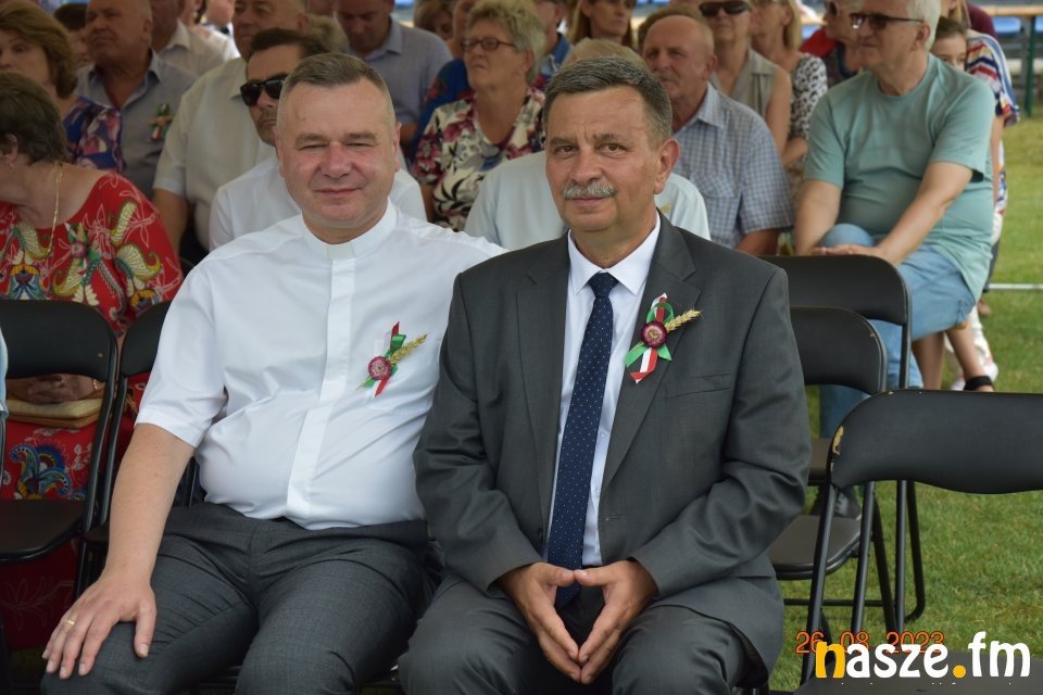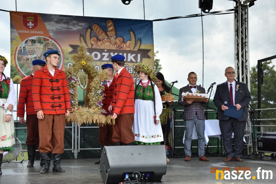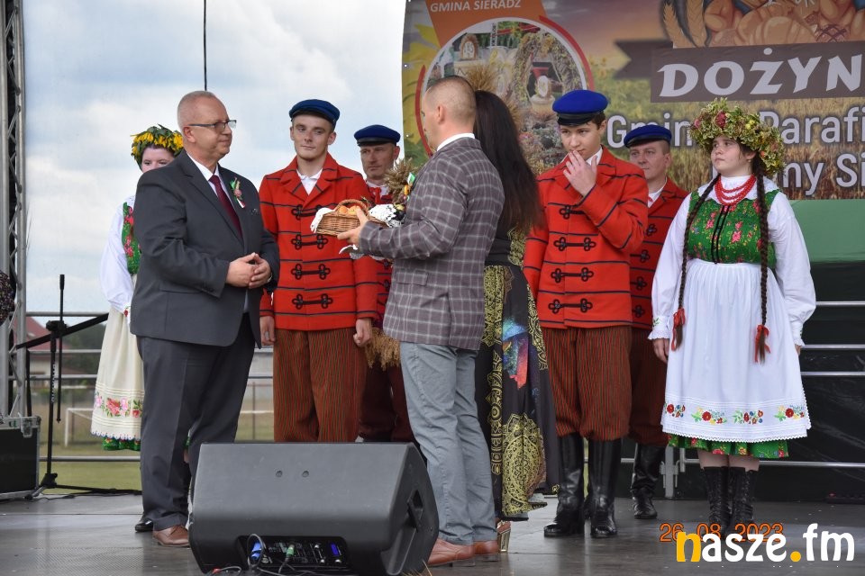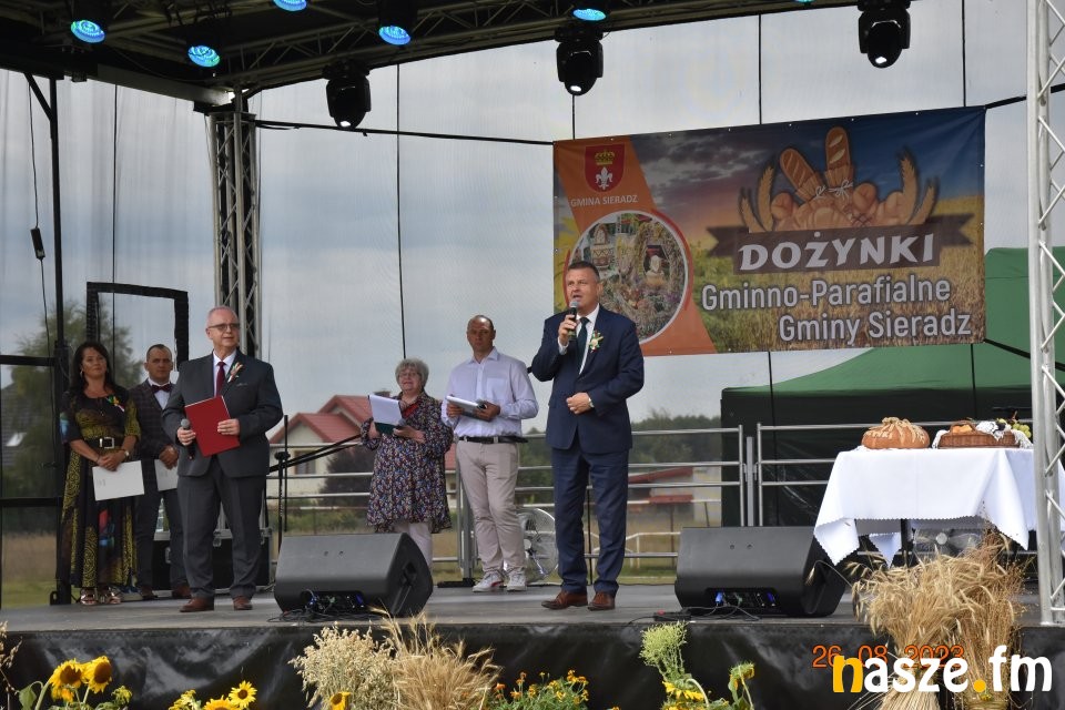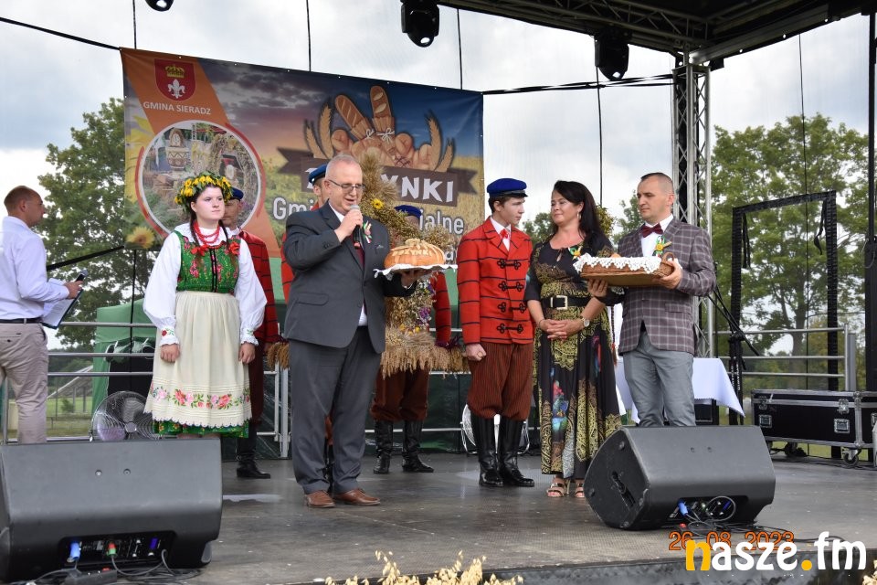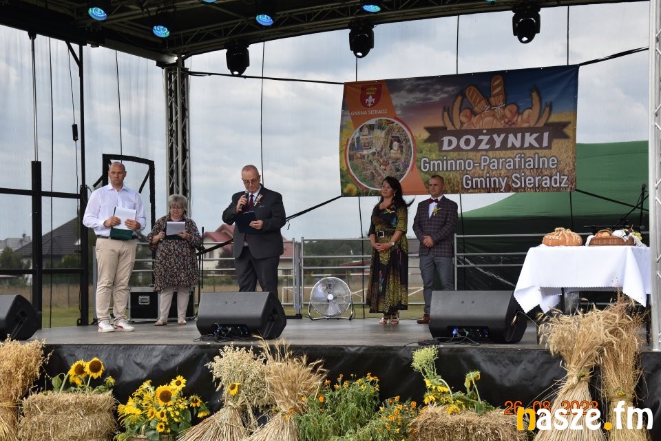 Tu przemówienie wygłosił gospodarz dożynek wójt gminy Sieradz - Jarosław Kaźmierczak oraz zaproszeni goście. Byli wśród nich: Sekretarz Stanu w Ministerstwie Rodziny, Pracy i Polityki Społecznej oraz Pełnomocnik Rządu ds. Osób Niepełnosprawnych - Paweł Wdówik, Sekretarz Stanu w Kancelarii Prezydenta Polski, Szef Biura Polityki Międzynarodowej - Marcin Przydacz, Poseł na Sejm RP - Piotr Polak, Starosta Powiatu Sieradzkiego - Mariusz Bądzior, Prezes Związku Młodzieży Wiejskiej - Adam Nowak, Przewodniczący Rady Gminy Sieradz - Henryk Waluda, Radna Gminy Sieradz - Bogumiła Woźniak. Następnie starostowie dożynek Joanna Płachta i Krzysztof Czupryniak przekazali chleb włodarzowi gminy. Tuż po obrzędzie dożynkowym odbyła się część artystyczna. Gwiazdą wieczoru był zespół Czadoman, a na zakończenie dożynek zorganizowano dyskotekę pod gwiazdami.