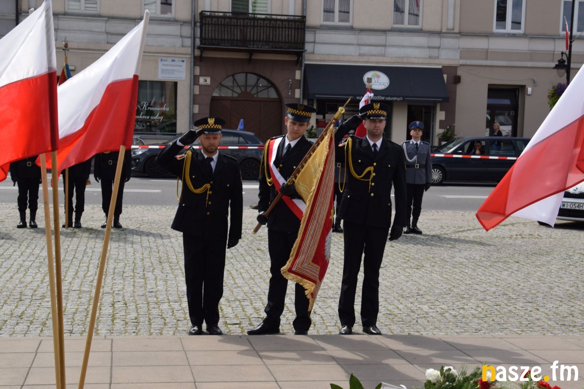 Tam też kombatanci, zaproszeni parlamentarzyści, przedstawiciele loklanych samorządów, szkół, organizacji i instytucji złożyli pod pomnikiem kwiaty, a poczty sztandarowe oddały hołd ofiarom II wojny światowej.