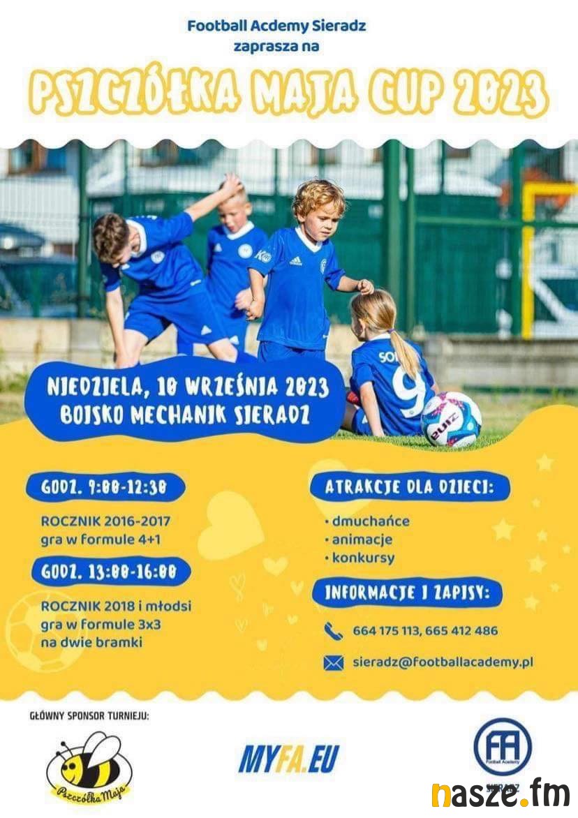 W niedzielę na boisku przy Zespole Szkół Ponadpodstawowych nr 1 w Sieradzu odbędzie się turniej piłkarski dla dzieci „Pszczółka Maja Cup 2023”. Rozgrywki rozpoczną się o godzinie 10:00.