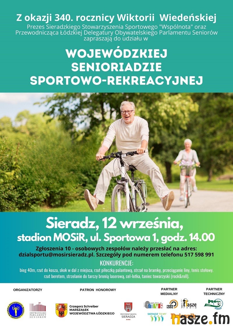 Dziś. o godz. 14.00 na płycie sieradzkiego stadionu będzie miało miejsce wyjątkowe wydarzenie. To I Wojewódzka Senioriada Sportowo-Rekreacyjna. Organizatorami są: Prezes Sieradzkiego Stowarzyszenia Sportowego "Wspólnota" oraz Przewodnicząca Łódzkiej Delegatury Obywatelskiego Parlamentu Seniorów.