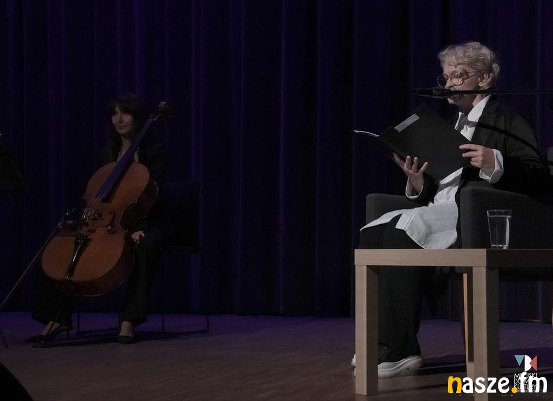 Aktorce na scenie towarzyszyli: wiolonczelistka Anna Szczygieł i multiinstrumentalista Dominik Rosłon.