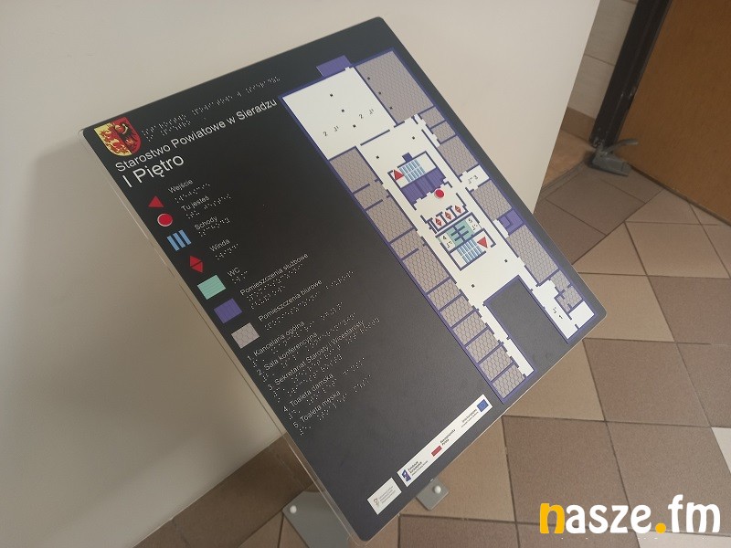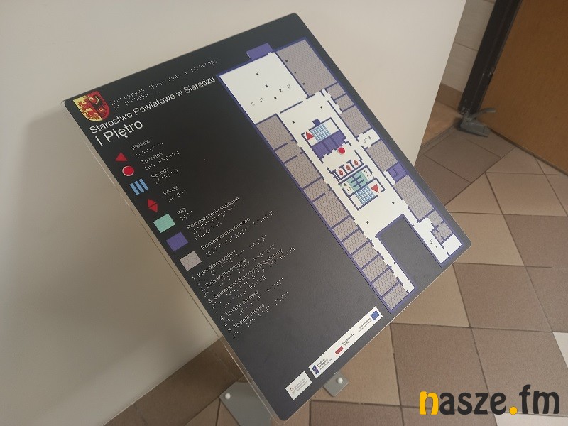 Starostwo Powiatowe w Sieradzu kontynuuje program działań, które mają spowodować, że gmach przy pl. Wojewódzkim 3 w Sieradzu będzie coraz bardziej przystępny jeżeli chodzi o poruszanie się po nim przez osoby ociemniałe i niedowidzące. Najnowsza inwestycja to specjalne tablice informacyjne opatrzone dodatkowo napisami w języku Braille'a.