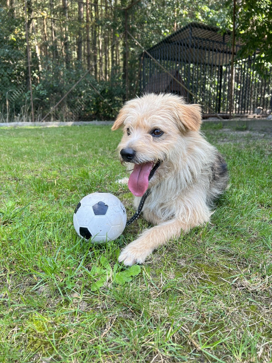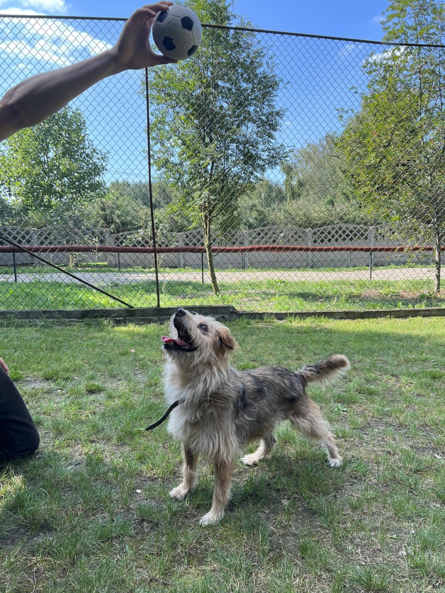 Kiri to psiak, który trafił do nas w kiepskim stanie, bardzo chudziutki, nie mamy pojęcia, ile musiał się błąkać... Dziś jest już w lepszej formie i szukamy dla niego wspaniałego domu, w którym będzie szczęśliwy. To chłopak, który na każdym kroku szuka kontaktu z człowiekiem. Niesamowicie otwarty na różne zabawy, czułości i interakcje. Potrafi chodzić na smyczy, ale nie jest to wzorowe, na pewno kilka treningów mu się przyda. Na ten moment nie zna żadnych komend, ale to pies z ogromnym potencjałem, niezwykle bystry i inteligentny. Jest mocno zmotywowany na człowieka, ale także zabawki. To młody psiak, więc energii mu nie brakuje. Dogaduje się z innymi psiakami w Czartkach. Szukamy dla niego aktywnego domu. Zdradzimy Wam, że przy czesanku bywa niecierpliwy, ale odpowiednim sposobem daje sobie radę. Kto go pokocha?