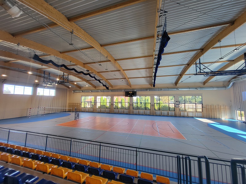 Budynek posiada halę wielofunkcyjną o wymiarach wewnętrznych 4580 x 2795 cm, na której zlokalizowana jest widownia na 274 miejsc siedzących. Przed halą główną znajduje się hol z szatnią, toaletami dla widzów oraz magazynami podręcznymi. Na zapleczu hali powstały dwa zespoły szatni składające się z dwóch przebieralni połączonych węzłem sanitarnym, zaplecza administracyjnego, pomieszczeń technicznych oraz siłowni. Obiekt pozwoli na organizację imprez kulturalnych i sportowych z udziałem do 50 uczestników i 274 widzów. Wartość całkowita zadania: 5 876 509,00 zł w tym wartość dofinansowania to 2 388 800,00 złotych. Inwestycja powstała w ramach programu "Sportowa Polska'" w ramach dofinansowania otrzymanego z Ministerstwo Sportu i Turystyki.