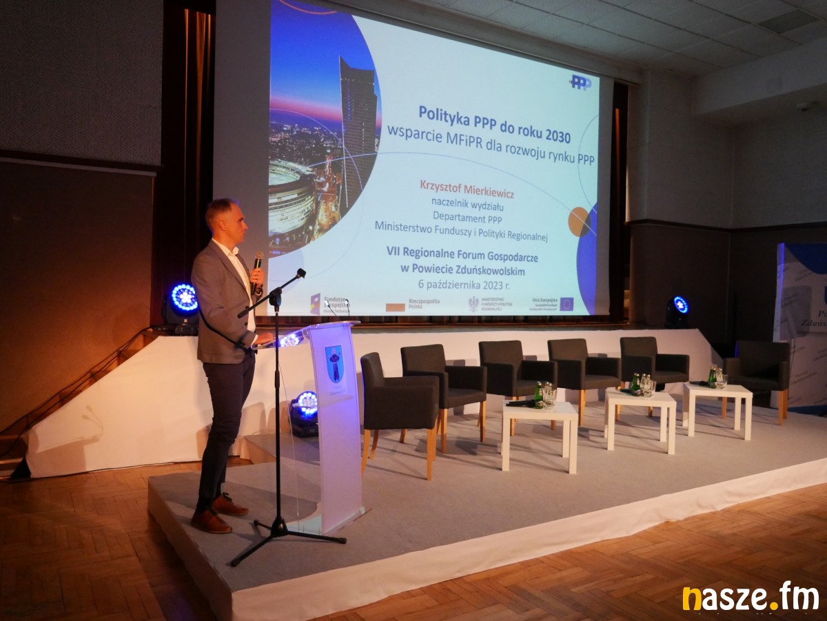 Druga część VII Regionalnego Forum Gospodarczego dotyczyła partnerstwa publiczno-prywatnego w małych i średnich miastach. Moderatorem tego panelu był Paweł Szewczyk, zastępca prezydenta Miasta Zduńska Wola. Omówił on zagadnienia na temat procesu przygotowania przedsięwzięcia w formule partnerstwa publiczno-prywatnego, jako czynnika rozwoju miast. Następnie Krzysztof Mierkiewicz, naczelnik Wydziału Wsparcia Programów i Inwestycji Infrastrukturalnych Departamentu Partnerstwa Publiczno-Prywatnego Ministerstwa Funduszy i Polityki Regionalnej przedstawił założenia i cele polityki partnerstwa publiczno-prywatnego do roku 2023 wraz z ofertą wsparcia Centralnej Jednostki do spraw Partnerstwa Publiczno-Prywatnego dla projektów planujących realizację inwestycji w tej formie.