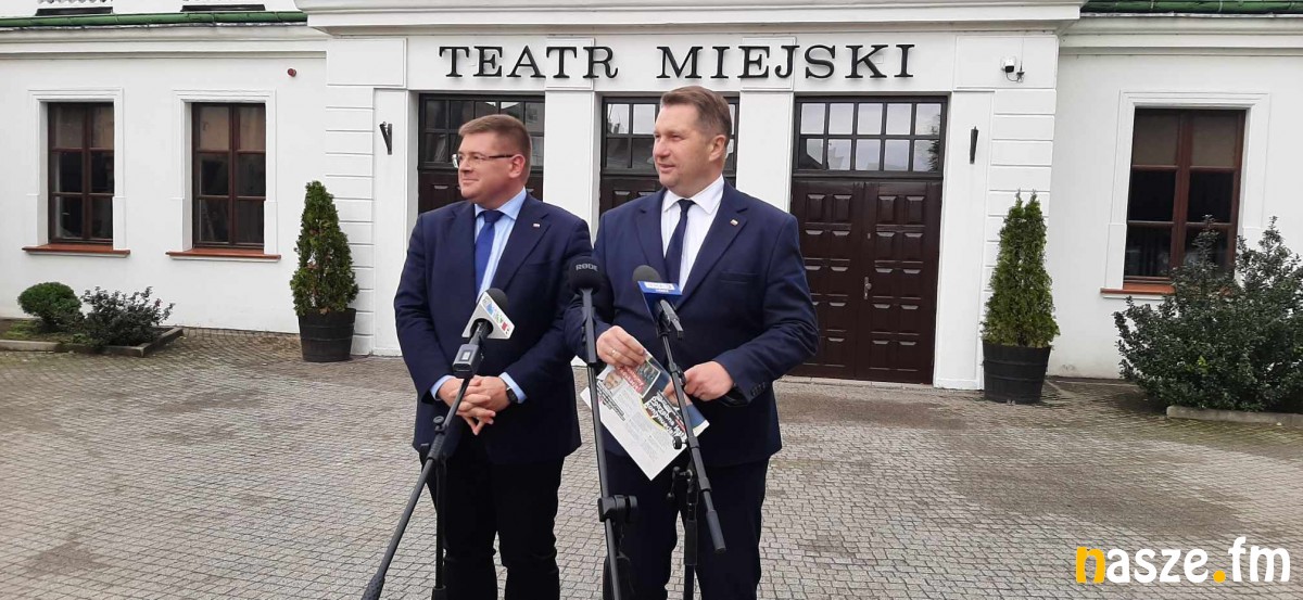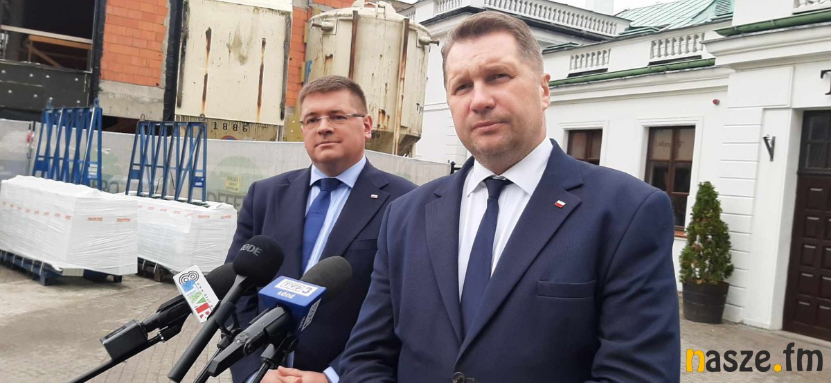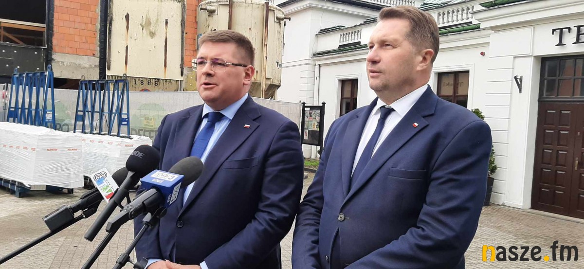 Minister Edukacji i Nauki Przemysław Czarnek odwiedził dziś Sieradz. Wspólnie z wiceministrem edukacji Tomaszem Rzymkowskim wziął udział w brieafingu prasowym na placu teatralnym. Minister Czarnek odniósł się m.in. do kolejnych pieniędzy na inwestycje z Polskiego Ładu, które przyznano samorządom z powiatu sieradzkiego.