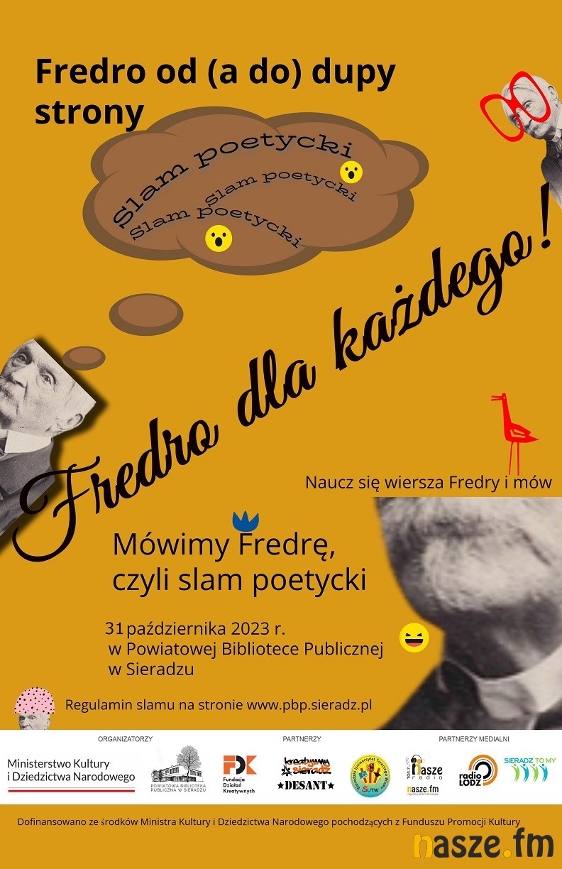- Czytaliśmy już Fredrę, sprawdzamy jak pisałaby dziś i jak wygląda komiks w oparciu o jego bajki. Teraz kolejna propozycja - "Fredro Od (a do) dupy strony, czyli Hrabia wySLAMowany" - wyjaśniają pracownicy PBP w Sieradzu.