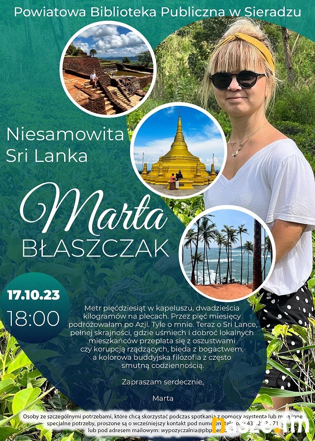 We wtorek 17 października o godz. 18:00 rozpocznie się spotkanie, na którym Marta Błaszczak podzieli się z nami doświadczeniami ze Sri Lanki, którą zwiedziła w ramach pięciomiesięcznej podróży po Azji.