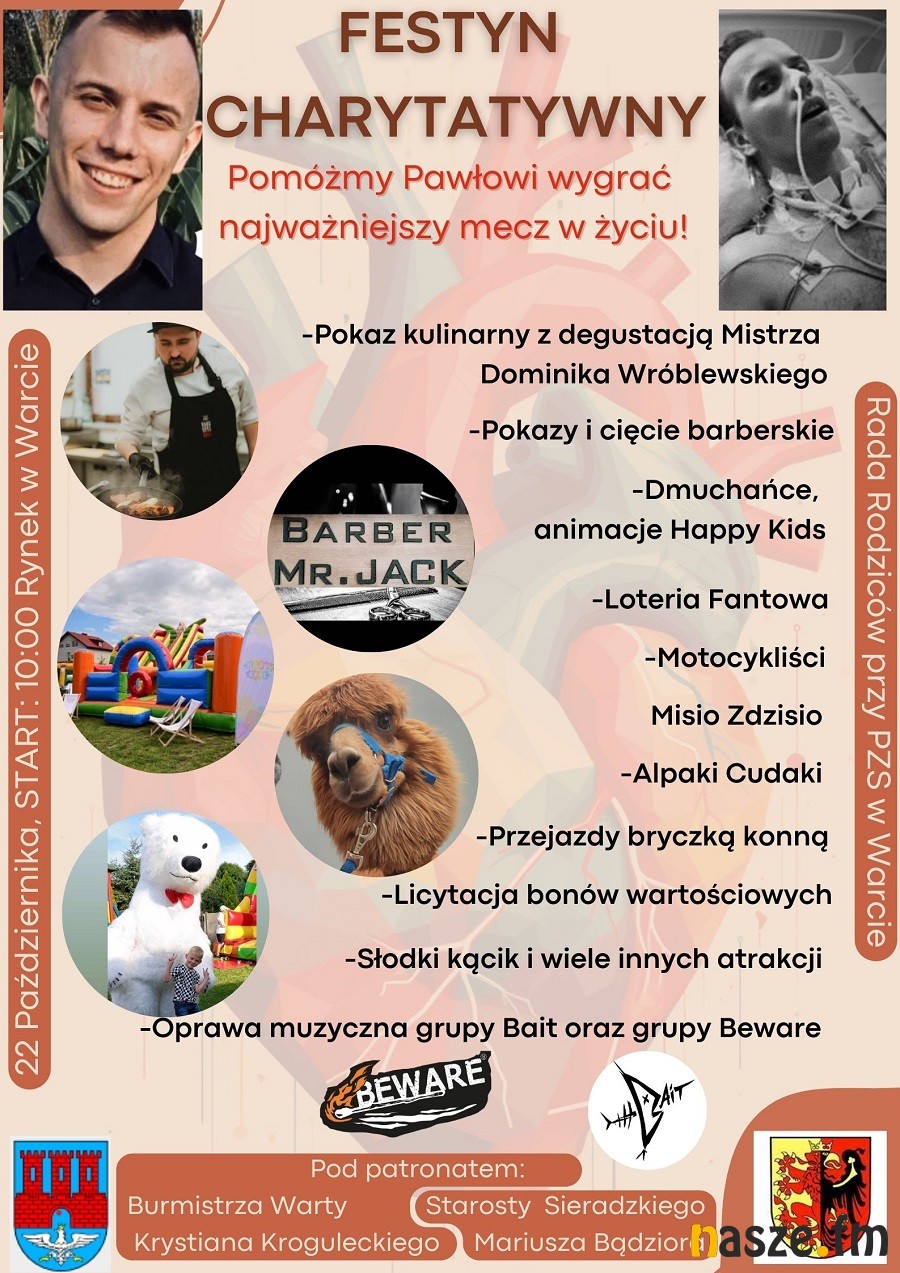 W najbliższą niedzielę w Warcie (pow. sieradzki) odbędzie się Festyn charytatywny dla Pawła Nowakowskiego. Ten młody człowiek walczy o powrót do zdrowia. Opieka medyczna wymaga jednak pieniędzy. Wartczanie chcą pomóc je zebrać.