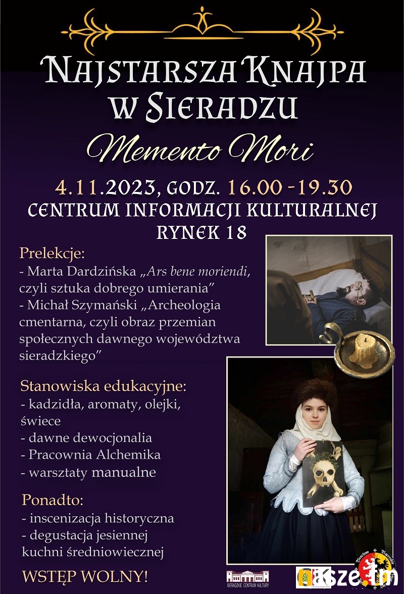 Centrum Informacji Kulturalnej w Sieradzu wspólnie z Bractwem Rycerskim Ziemi Sieradzkiej zaprasza na kolejną odsłonę ciekawej cyklicznej imprezy. Tym razem wydarzenie odbędzie się w mrocznym klimacie zaduszkowym. Zaplanowano je w CIK w sobotę 4 listopada br. od godz. 16, wstęp wolny.