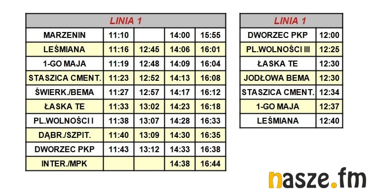Z kolei Miejskie Przedsiębiorstwo Komunikacji w Zduńskiej Woli zwiększy liczbę połączeń na liniach 1 i 5. Godziny odjazdów dodatkowych autobusów zgodne z zamieszczonymi poniżej rozkładami.