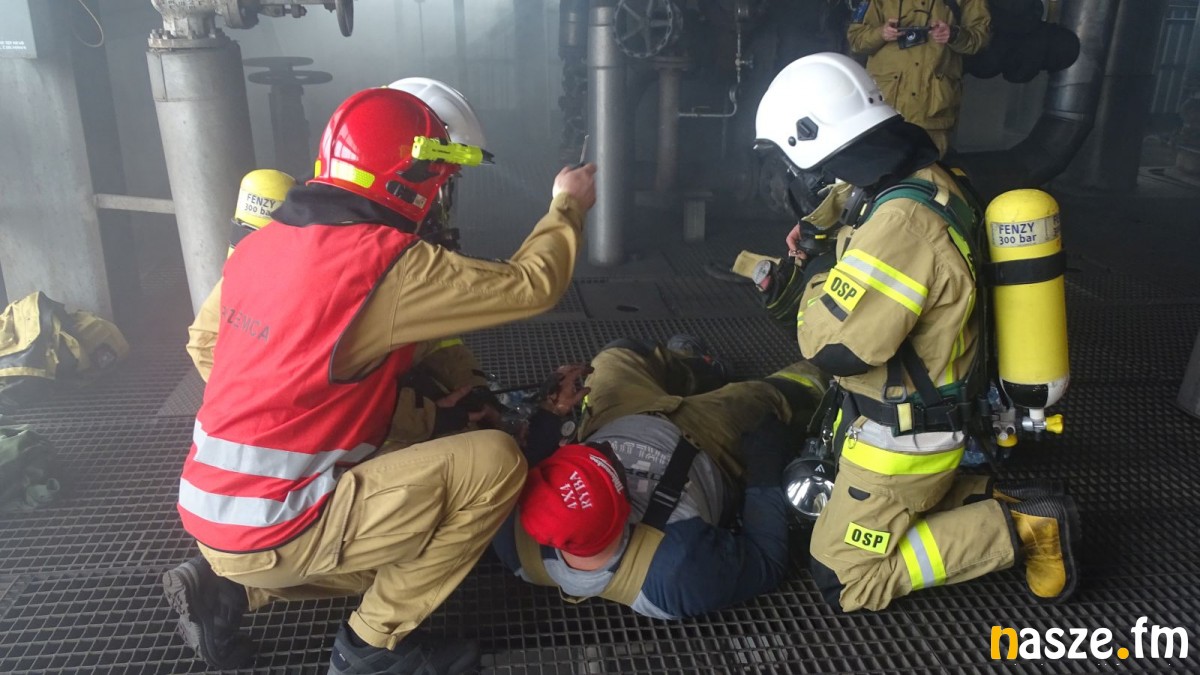 Pożar, przeszukiwanie zadymionych pomieszczeń, pomoc osobom poszkodowanym, wypadek jednego z ratowników. Działania zarówno w budynku, gdzie są piece oraz na placu węglowym. Tak w skrócie wyglądał scenariusz strażackich ćwiczeń, które dziś, 8 listopada, zorganizowano na terenie Elektrociepłowni w Zduńskiej Woli. Łącznie ćwiczyło ponad 60 strażaków z terenu całego powiatu zduńskowolskiego.