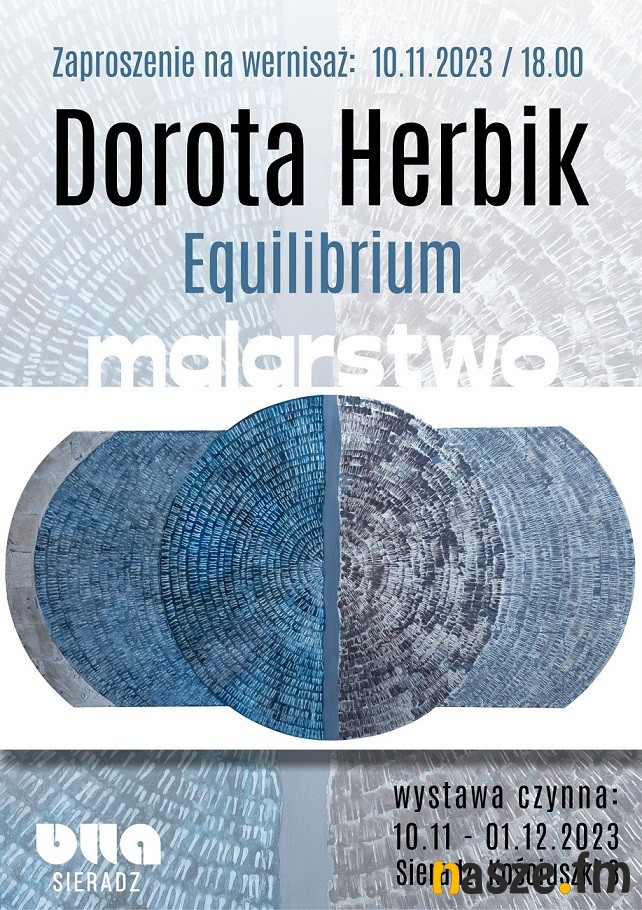 W galerii przy ul. Kościuszki w Sieradzu jutro o godz. 18:00 zostaną otwarte dwie wystawy: malarstwa Doroty Herbik pt. Equilibrium, a także grafiki, fotografii i sztuki generatywnej prof. Marka Herbika pt. "Typologia wyobrażona". Dodatkowo w holu BWA zostanie otwarta wystawa prac studentów Akademii Sztuk Pięknych w Łodzi.
