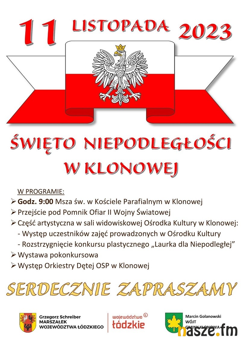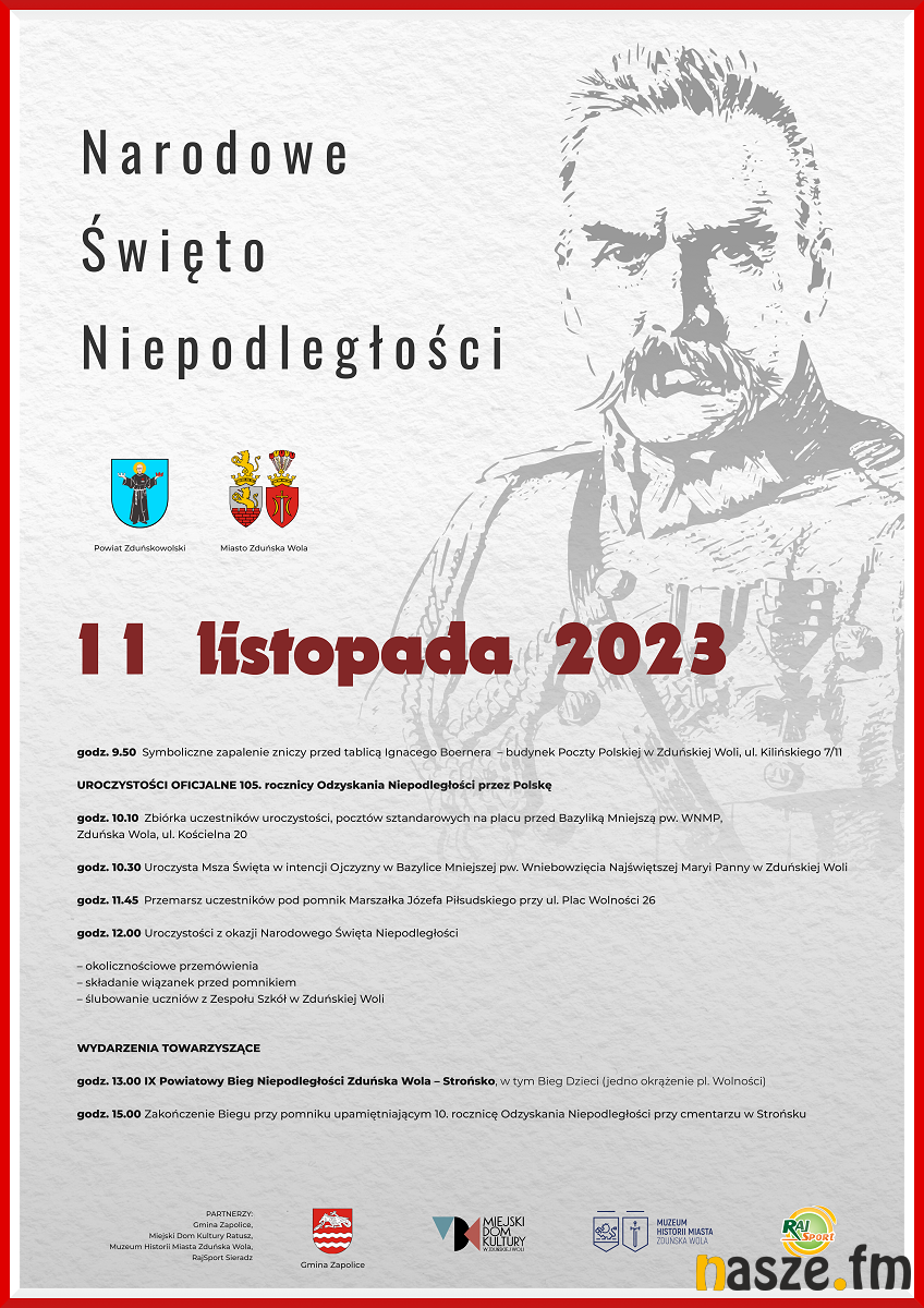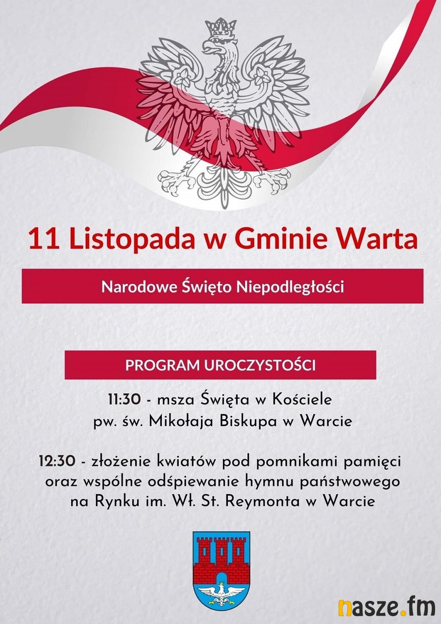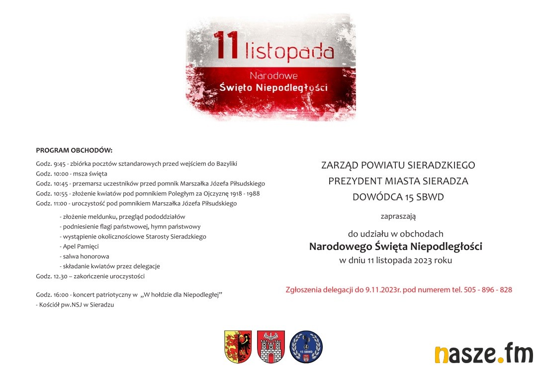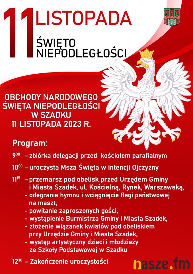 Jak co roku Narodowe Święto Niepodległości 11 listopada będzie akcentowane w całym naszym regionie. Obchody odbędą się m.in. w Zduńskiej Woli, Sieradzu, Strońsku, Szadku, Błaszkach, Warcie czy Złoczewie. Świętować będziemy też w Naszym Radiu, grając tylko polskie piosenki.