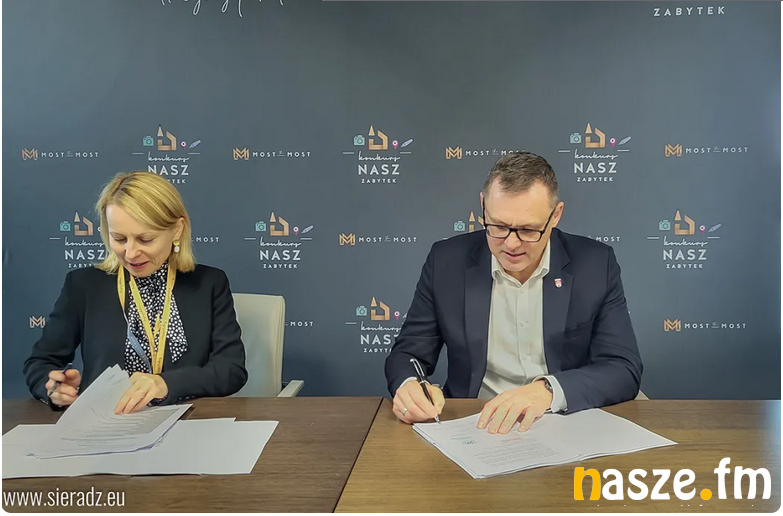 Paweł Osiewała prezydent Sieradza oraz Brygida Slabska, prezes zarządu Fundacji Most the Most, podpisali w Warszawie umowę na wypłatę grantu w wysokości miliona złotych na rewitalizację Dworku Modrzewiowego.