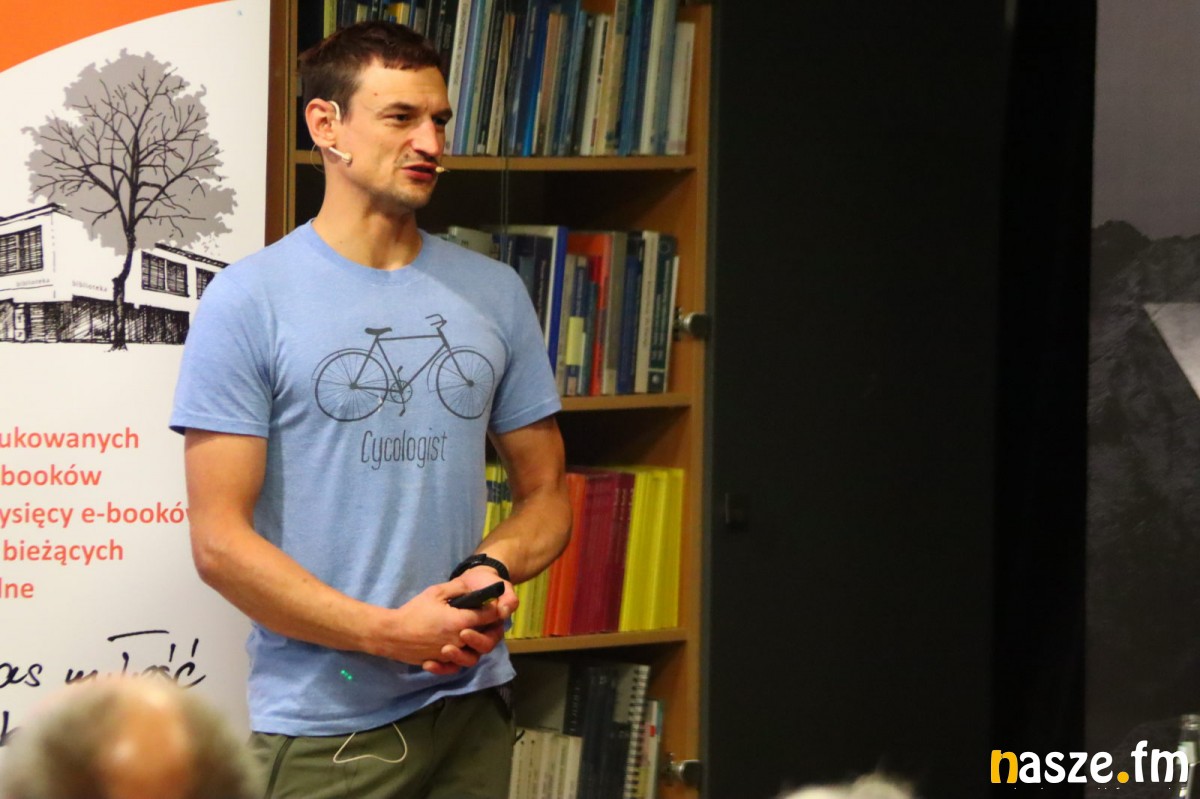 Filmy można też było oglądać dziś w bibliotece powiatowej, były zdjęcia ze wspinaczki czy namiotów i sympatyczne anegdoty. W wypełnionej po brzegi sali (niektórzy z powodu braku miejsc do niej nie weszli) panowała serdeczna atmosfera. I choć spotkanie trwało ponad dwie godziny, to widzowie z zapartym tchem oglądali filmy i słuchali opowieści Adama.