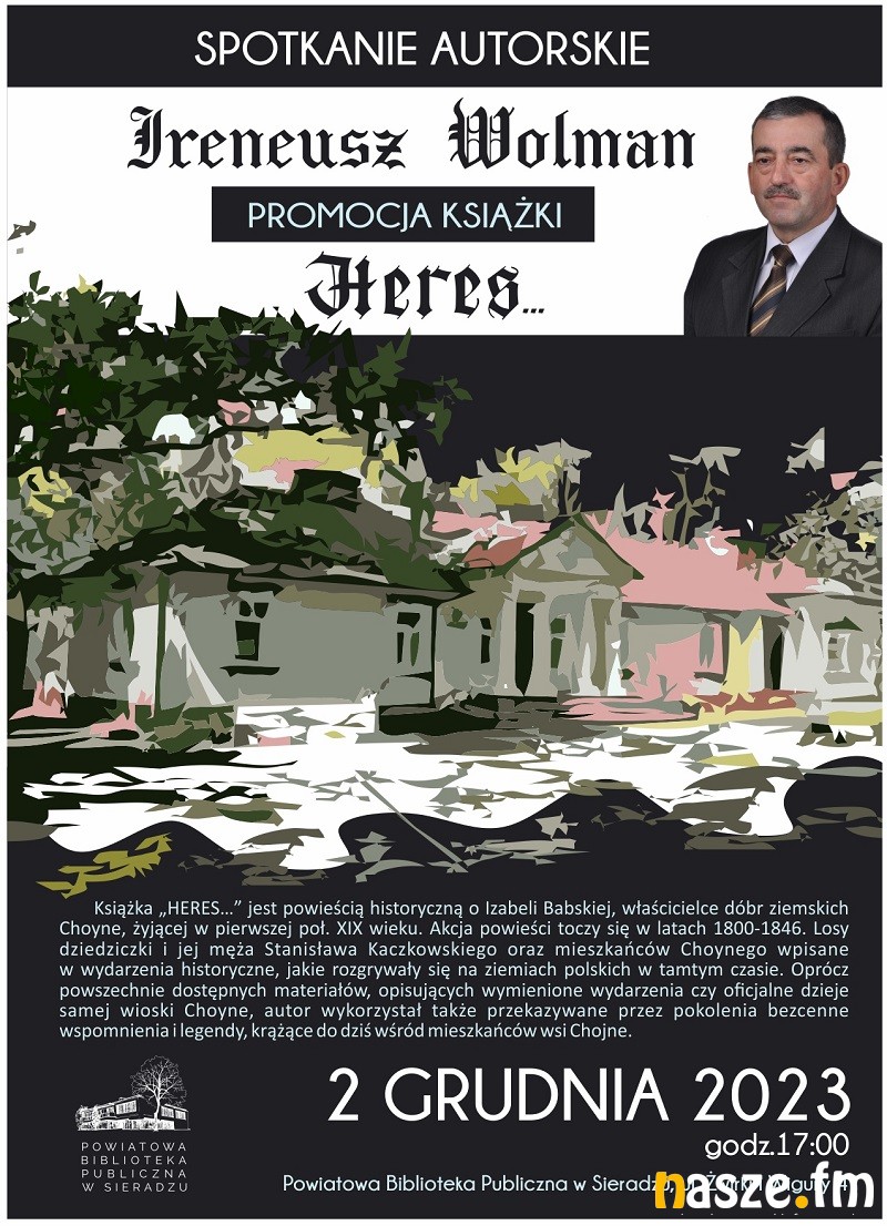Heres… Tak zatytułowana jest trzecia część cyklu literackiego "Saga Chojeńska". To opowieść o dziejach wsi Chojne (gm. Sieradz) i jej okolicach stworzona na podstawie faktów historycznych, ale też legend przez Ireneusza Wolmana. To mieszkaniec Chojnego, pasjonat lokalnej historii oraz całej ziemi sieradzkiej. Promocja tego wydawnictwa będzie w dn. 2 grudnia br. o godz. 17 w Powiatowej Bibliotece Publicznej w Sieradzu. Wstęp wolny.