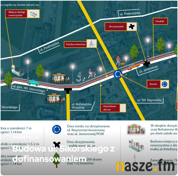 Ponad 9 mln zł dofinansowania z rezerwy celowej budżetu państwa pozyskał sieradzki magistrat na budowę nowej drogi na odcinku od ul. Sikorskiego do ul. Reymonta oraz rozbudowę ul. Jesionowej.