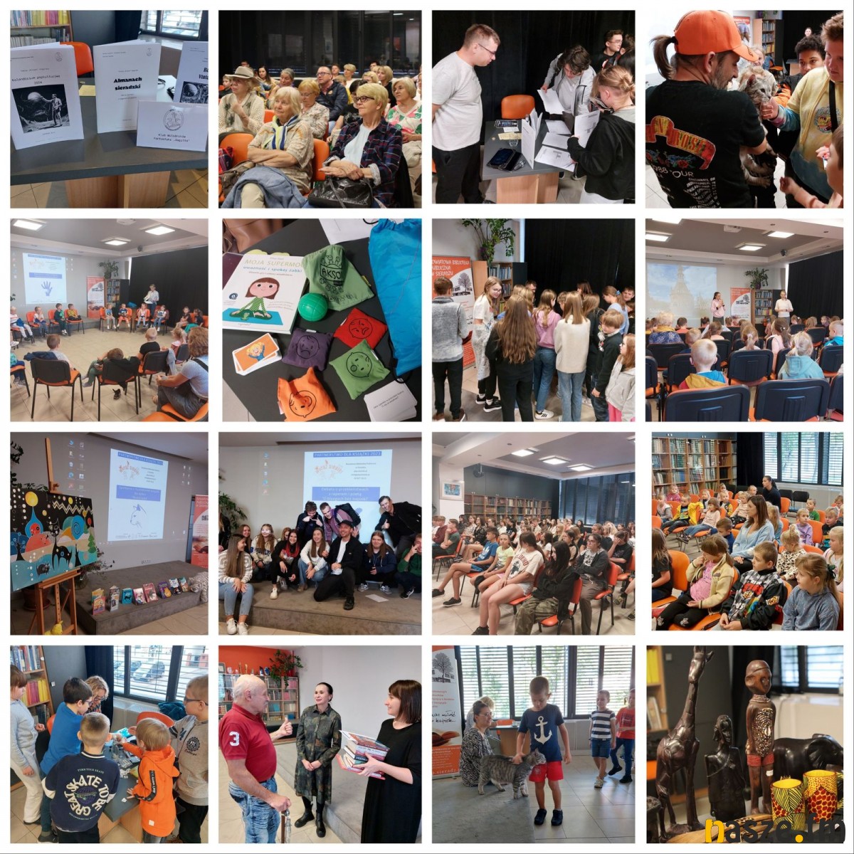 Ostatnie miesiące w bibliotece powiatowej w Sieradzu to czas wielu interesujących wydarzeń w ramach projektu "Wyraź siebie!". Czytelnicy mogli wziąć udział w warsztatach, spotkaniach z podróżnikami i pisarzami oraz w konkursach.