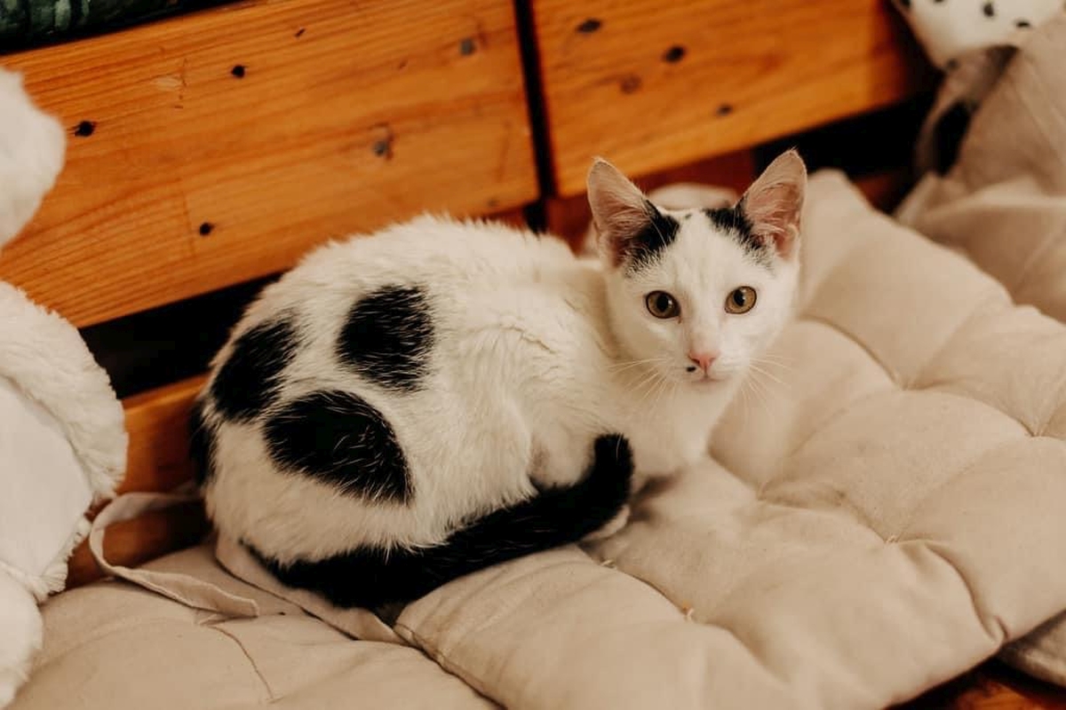 Pieprzyk to młodziutki kocurek, który swoim wyglądem od razu przykuwa uwagę, swoje imię zawdzięcza charakterystycznej kropce na umaszczeniu, która wygląda jak pieprzyk. Do nowych osób podchodzi z lekkim dystansem, ale kiedy już poczuje przytulaski i chęci do zabawy, to w swoim tempie otwiera się na nowe. Szuka domu na zawsze, pomożesz mu go znaleźć? Urodził się w czerwcu 2023 roku.