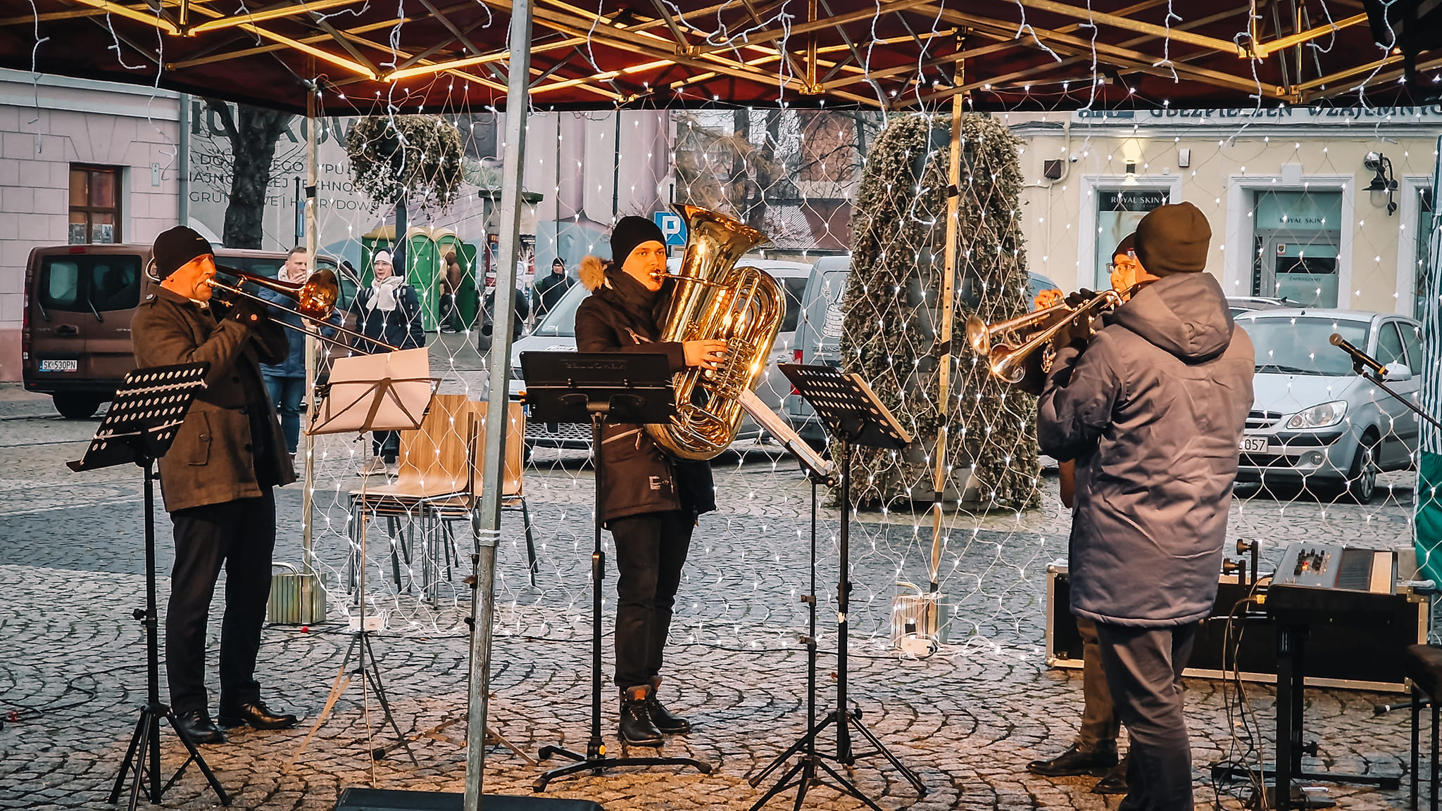 Jarmark Adwentowy rozpoczął się od występów grup wokalnych Sieradzkiego Uniwersytetu III Wieku oraz młodzieży z MDK przy Centrum Edukacji Zawodowej w Sieradzu. O godz. 13 scenę opanował zespół Christmas Brass. Zespół złożony z absolwentów Akademii Muzycznej w Łodzi wystąpił z repertuarem polskich kolęd i utworów świątecznych.