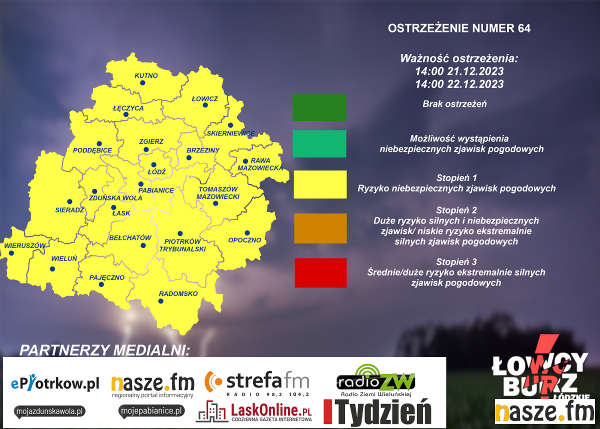Ostrzeżenie numer 64 wydane przez Łowców Burz Łódzkie: