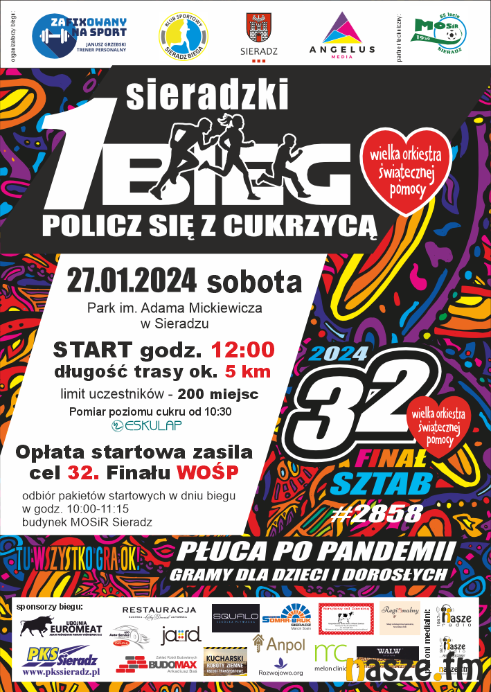 W tym roku po raz pierwszy w Sieradzu, z okazji finału Wielkiej Orkiestry Świątecznej Pomocy zorganizowany zostanie bieg "Policz się z cukrzycą". Zostały ostatnie wolne miejsca.