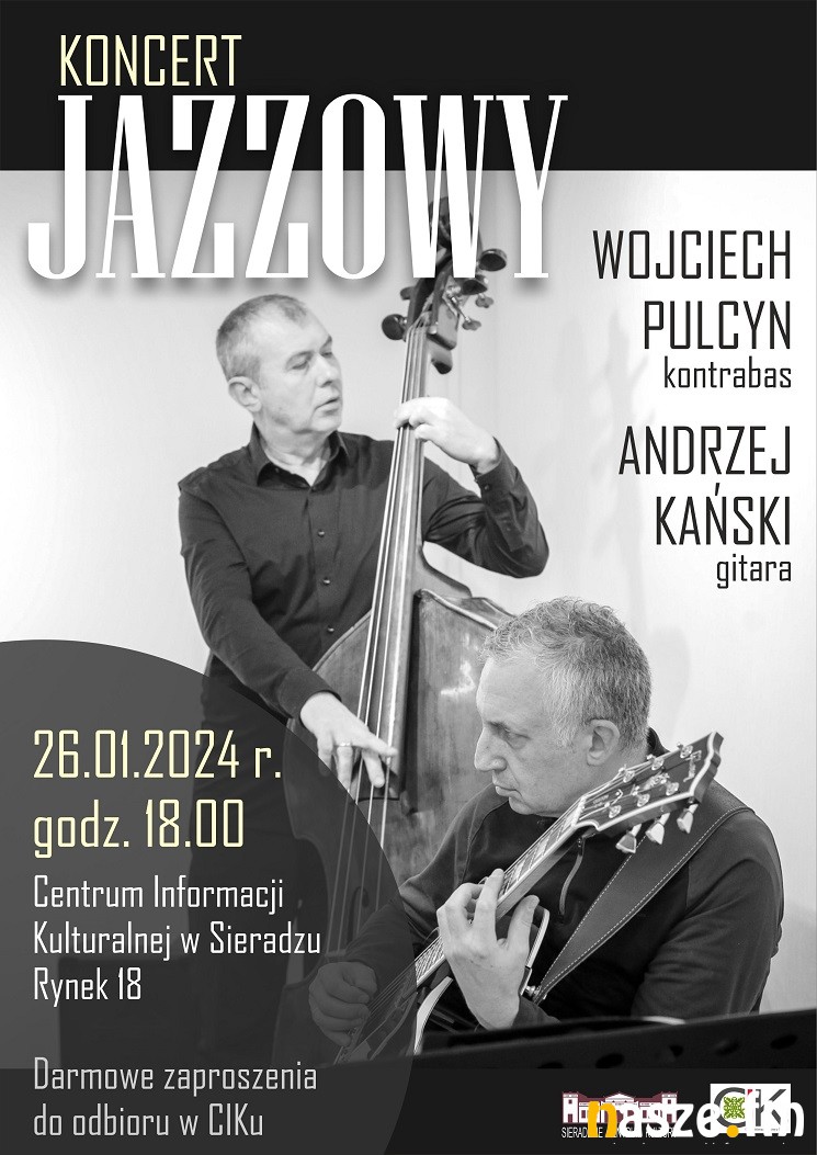 W Centrum Informacji Kulturalnej w Sieradzu 26 stycznia odbędzie się kolejny z cyklu mini koncertów. - Tym razem, kontynuując jazzowe klimaty, gościć będziemy znakomitych muzyków - Wojciecha Pulcyna i Andrzeja Kańskiego - zapowiadają organizatorzy.