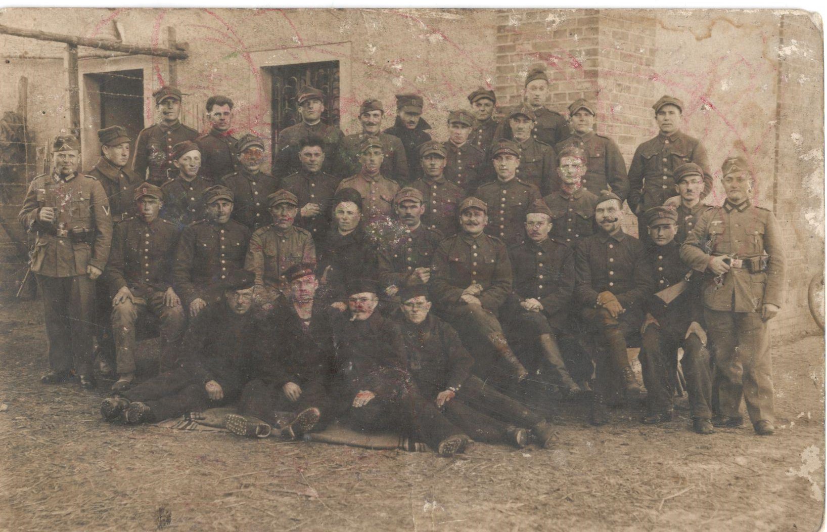 - Przedstawia grupę mężczyzn w polskich mundurach pilnowanych przez dwóch żołnierzy niemieckich. Na dole można zauważyć cztery osoby w mundurach marynarskich. W drugim szeregu w środku znajduje się mężczyzna w ubraniu cywilnym w czapce typu wschodniego (z Wołynia?) Czas powstania zdjęcia to przypuszczalnie początek II wojny światowej. Niestety nie udało się zidentyfikować osób i miejsca, w którym zostały sfotografowane. Być może zdjęcie zostało wykonane w nieokreślonym obozie jenieckim dla polskich żołnierzy - oceniają pracownicy sieradzkiego muzeum.