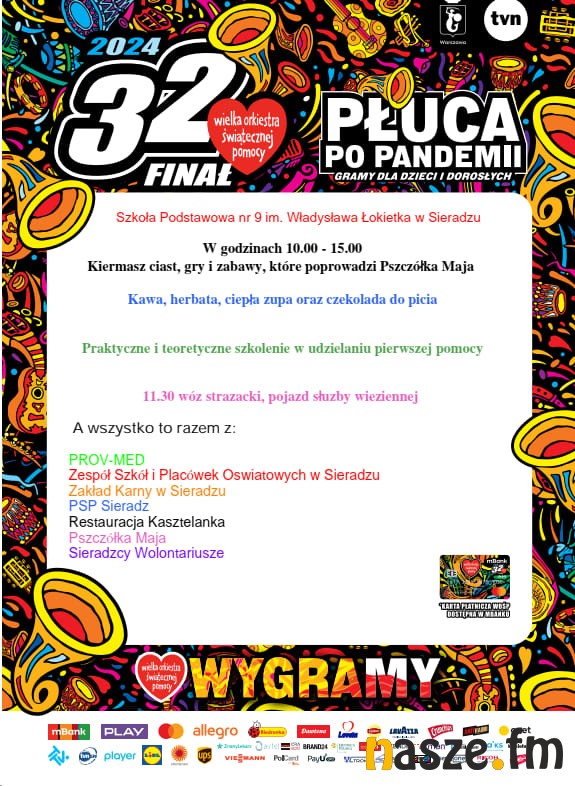 W najbliższą niedzielę 28 stycznia odbędzie się 32. Finał Wielkiej Orkiestry Świątecznej Pomocy. W tym roku cel wydarzenia brzmi "Płuca po pandemii. Gramy dla dzieci i dorosłych". W Sieradzu również odbędą się zbiórki oraz imprezy towarzyszące. Wieczorem zapraszamy na plac Wojewódzki, gdzie będzie można zobaczyć tradycyjne "Światełko do nieba".