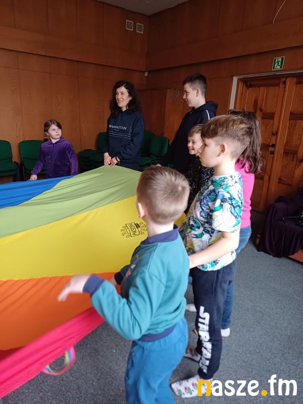Niemałym zainteresowaniem cieszyły się również spotkania, na których można było zagrać w gry planszowe i interaktywne. Dobrej zabawie i integracji między uczestnikami, sprzyjały animacje z chustą Klanza oraz stały punkt w bibliotece – kalambury z literatury. Tym sposobem w formię zabawy sprawdziliśmy wiedzę dzieci z zakresu bajek i książek.