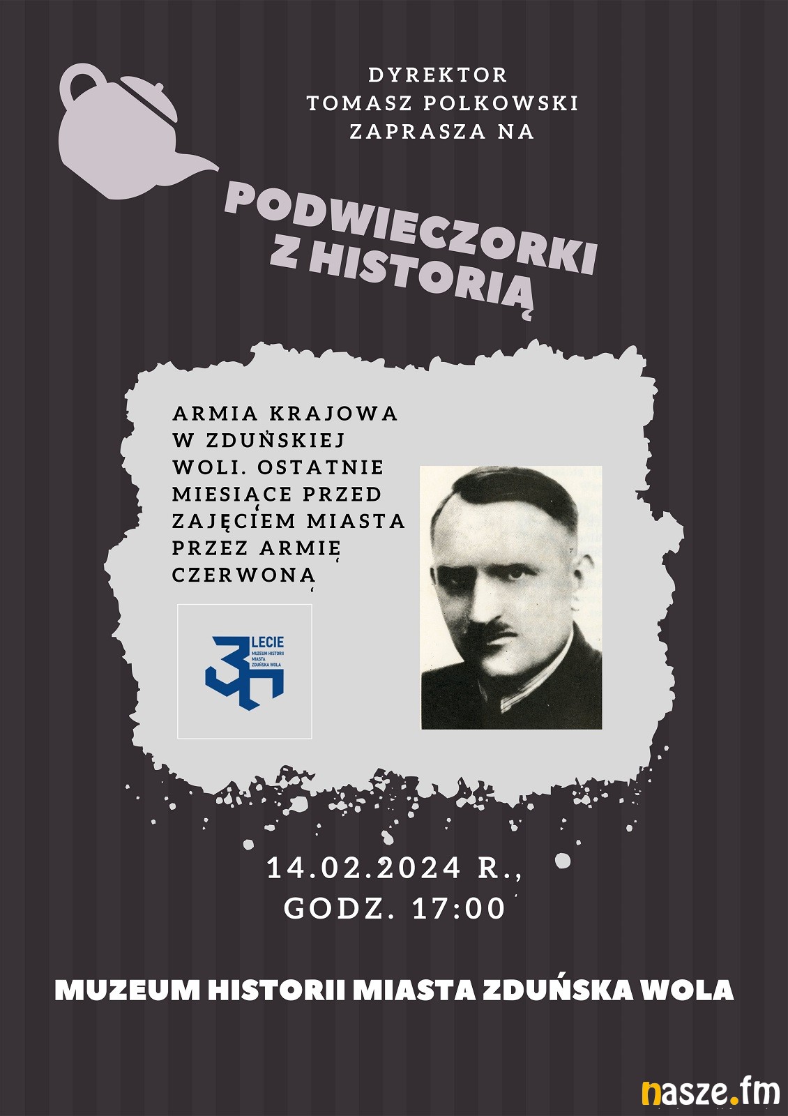 W ramach cyklu "Podwieczorki z historią" dziś, 14 lutego, w zduńskowolskim muzeum dyrektor tej placówki Tomasz Polkowski wygłosi wykład pt. "Armia Krajowa w Zduńskiej Woli. Ostatnie miesiące przed zajęciem miasta przez Armię Czerwoną".