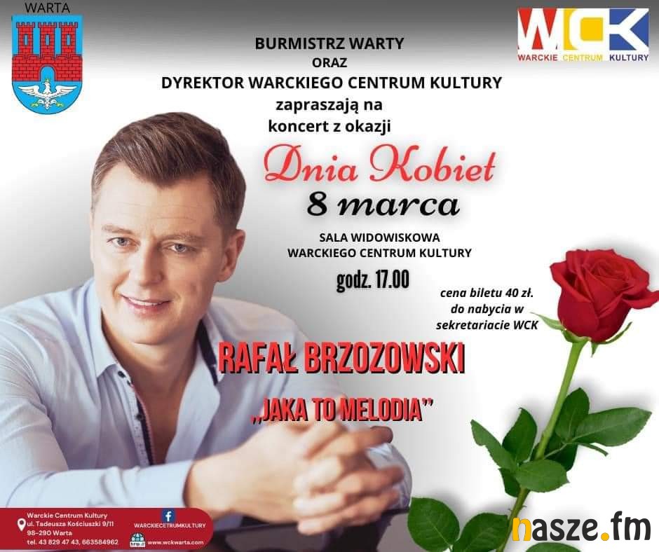 8 marca na Sali Widowiskowej Warckiego Centrum Kultury odędzie się koncert z okazji Dnia Kobiet. Zaśpiewa Rafał Brzozowski. Bilety są do nabycia w sekretariacie WCK.