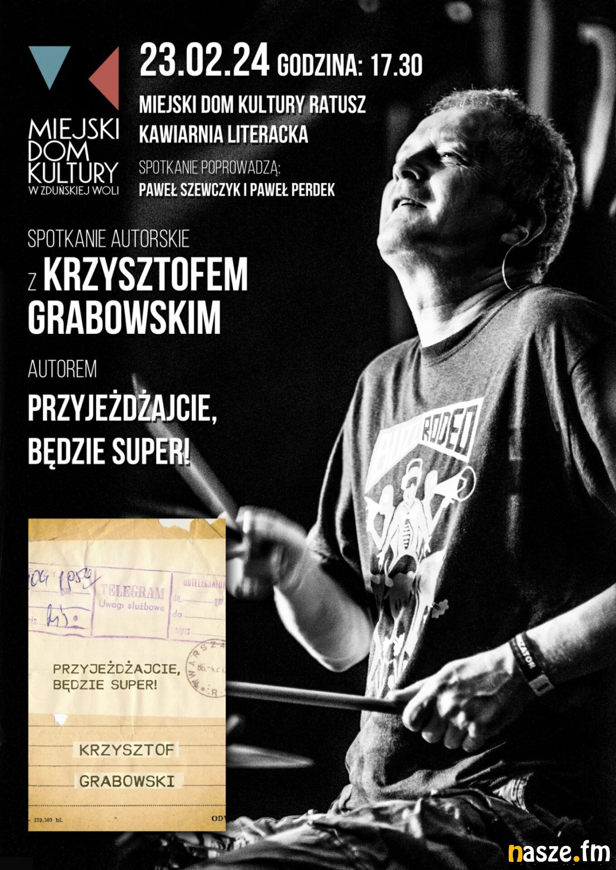 Miejski Dom Kultury Ratusz i Kawiarnia Literacka zapraszają na spotkanie autorskie z Krzysztofem Grabowskim, który promuje swoją książkę "Przyjeżdżajcie, Będzie Super".