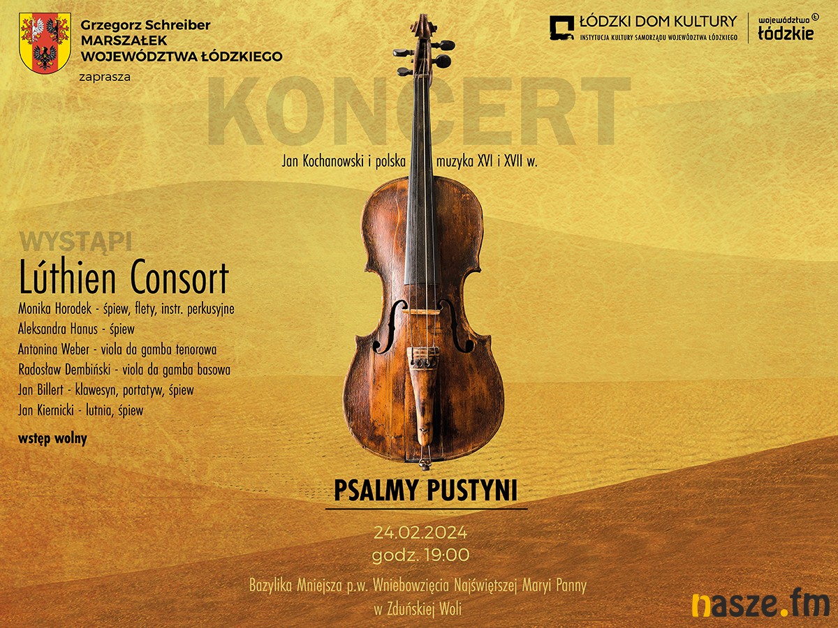 To arcydzieło poezji oraz perły polskiej muzyki Złotego Wieku zabrzmią w śpiewie wielogłosowym i grze na dawnych instrumentach (m. in. lutni, violi da gamba, portatywie i fletach) podczas koncertu zespołu Lúthien Consort. Jeśli zagłębimy się nie tylko w polszczyznę i muzykę, ale też w głębokie duchowe znaczenie i mądrość wersetów psalmowych, to koncert może się okazać równocześnie wielkopostną medytacją. Tytułowa pustynia (przez Kochanowskiego tłumaczona czasami jako "puszcza") to kraina niebezpieczna i nieznana, w którą wyrusza się poszukując Boga. Na pustynię wychodzili Abraham, Mojżesz, pokutujący król Dawid, prorokujący Jan Chrzciciel, wreszcie sam Jezus. Pustynia to przestrzeń w której doświadcza się próby, dobrowolnie rezygnuje się z wielu rzeczy. Jednak ta strata czasami pozwala odnaleźć to co najważniejsze.