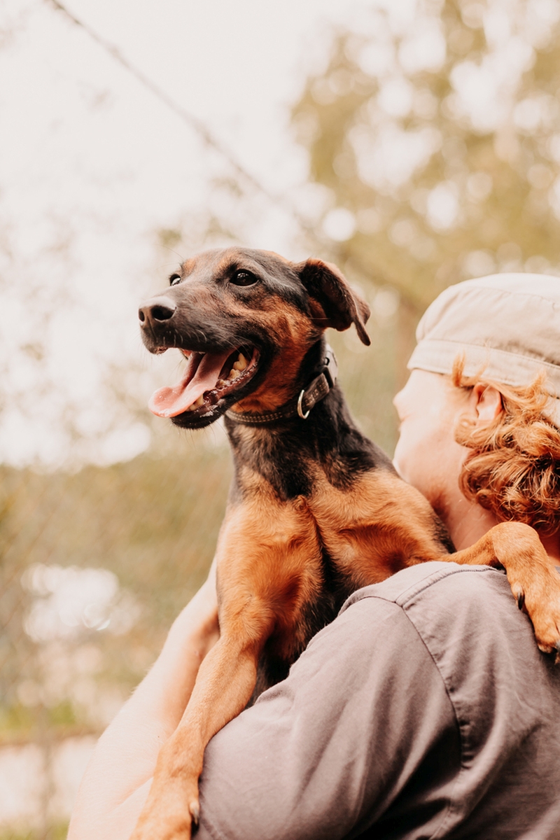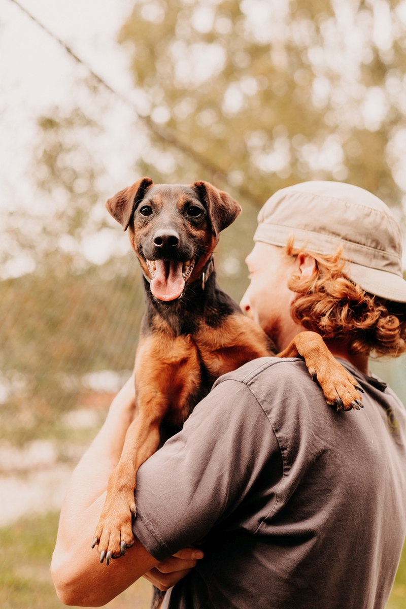 W schronisku świetnie dogaduje się z innymi psami, ale obecnie mieszka sam w kojcu. Nie wykazuje agresji na placu, więc myślimy, że w codziennych kontaktach będzie ok. Co do kotów nie ma z nimi żadnych zatargów.
