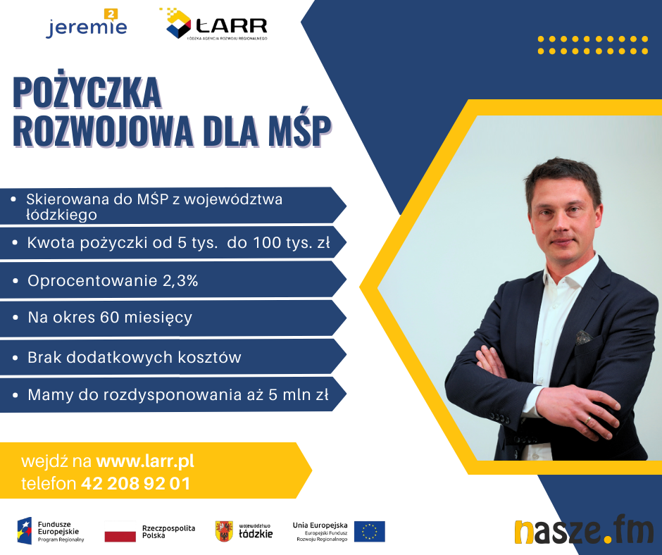Już od 1 marca zapraszam przedsiębiorców z województwa łódzkiego do skorzystania z wyjątkowej okazji - Łódzka Agencja Rozwoju Regionalnego S.A. wznawia nabór wniosków na pożyczki inwestycyjne w ramach Pożyczki Rozwojowej - do czego serdecznie zachęcam - Prezes ŁARR S.A. Marcin Rybka.