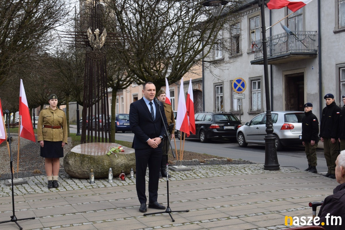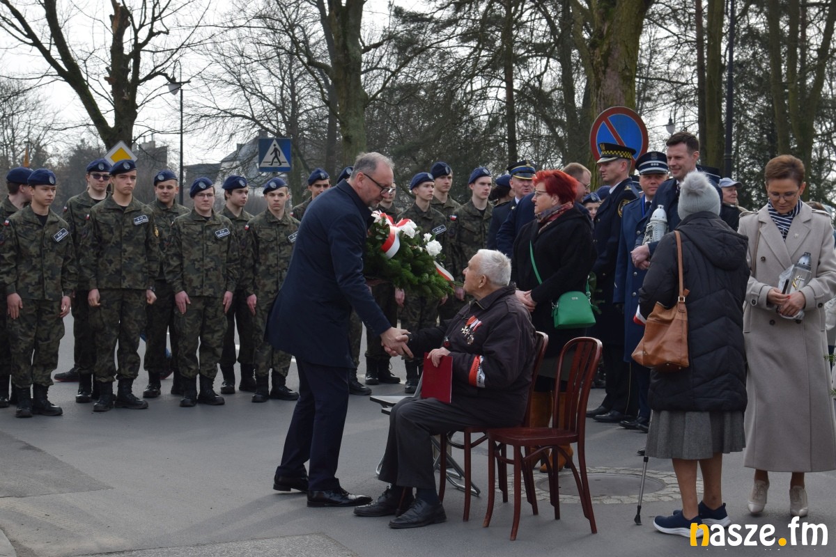 Podczas uroczystości z udziałem mieszkańców, władz samorządowych, przedstawicieli organizacji i stowarzyszeń, pocztów sztandarowych odśpiewano hymn państwowy. Nie mogło zabraknąć też okolicznościowych przemówień. Swoją historię i historię kolegów walczących o wolną Polskę przypomniał Jan Brzozowski. Kombatant ze Zduńskiej Woli urodził się w 1927 roku. W latach 1946-1947 był członkiem organizacji "Wolność i Niezawisłość", a w latach 1948-1950 podziemnej organizacji niepodległościowej "Katyń" w Zduńskiej Woli. Za swoją działalność został aresztowany w 1950 roku, a w 1951 skazany na 5 lat pozbawienia wolności.