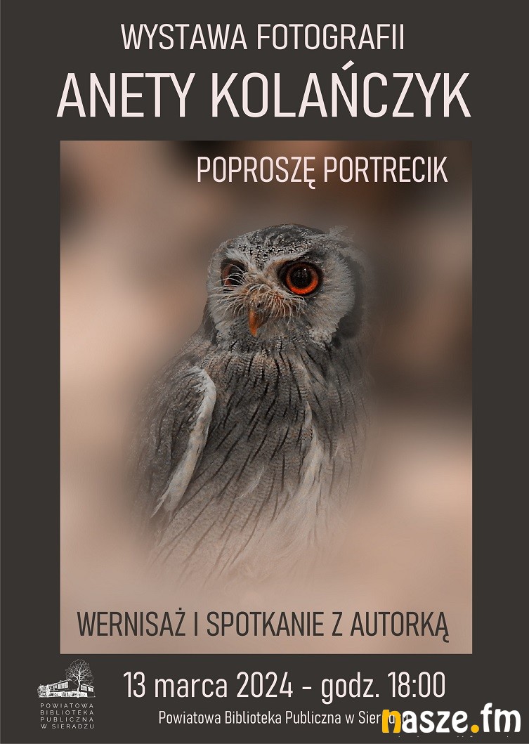 - Zapraszamy 13 marca o godzinie 18:00 do Powiatowej Biblioteki Publicznej w Sieradzu na wernisaż wystawy „Poproszę portrecik” i spotkanie z Anetą Kolańczyk - zapowiadają organizatorzy.