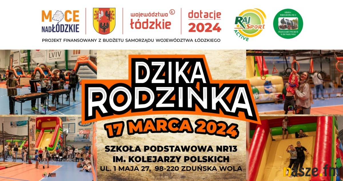 W najbliższą niedzielę na hali w Szkole Podstawowej nr 13 im. Kolejarzy Polskich w Zduńskiej Woli odbędzie się świetna, sportowa zabawa dla całych pokoleń: "Dzika Rodzinka", organizowana przez Rajsport Active.