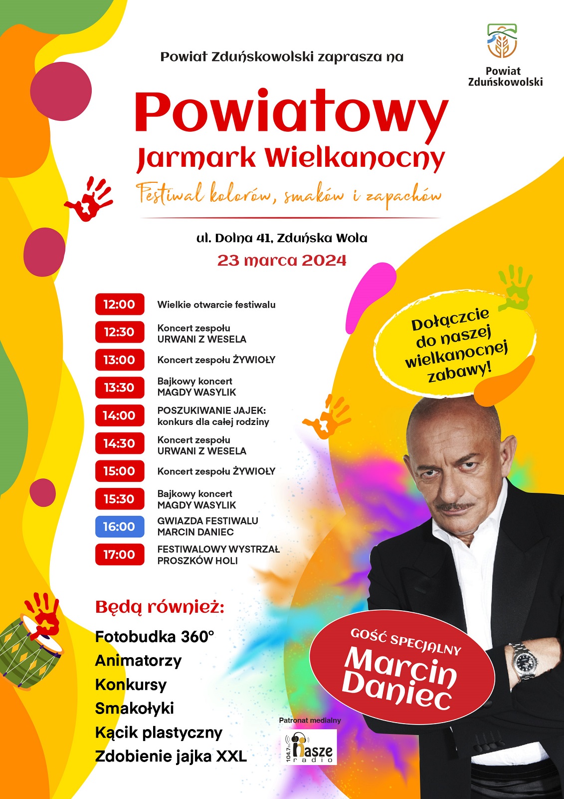 Powiatowy Jarmark Wielkanocny - Festiwal Kolorów, Smaków i Zapachów, którego głównym organizatorem jest Powiat Zduńskowolski, rozpocznie o godz. 12:00.