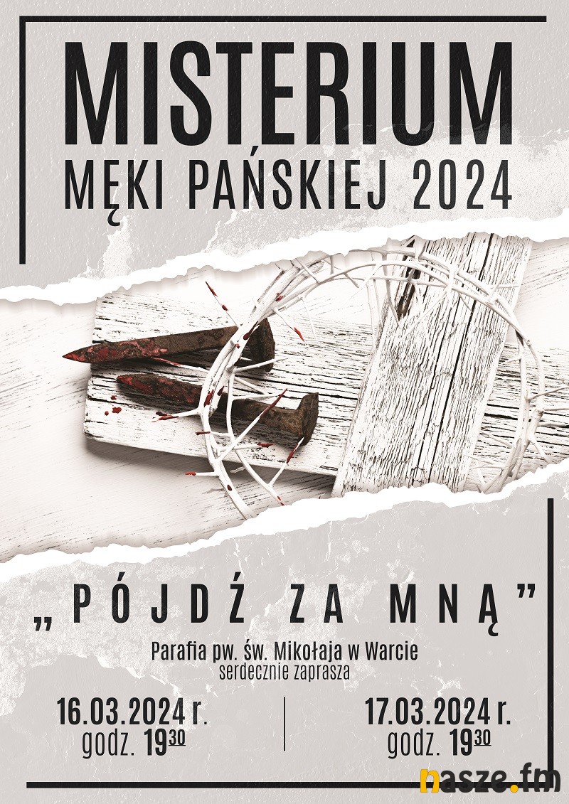 - W tym roku rolę Jezusa zagra Jakub Tworo, Kajfaszem będzie Marcin Wicherski, Annaszem Krzysztof Kossak a Piłatem Zbigniew Legucki. Będą też inni Żydzi, Apostołowie, kupcy, żołnierze, Maryja, szatan , anioł i cudzołożnica. Pasję ubogacą śpiewem utalentowane studentki z naszego miasta. W Misterium przedstawione są ostanie dni życia i śmierć na krzyżu Pana Jezusa. Udział w przedstawieniu pozwala aktorom i widzom przenieść się myślami do tamtych wydarzeń i lepiej duchowo przygotować się do Świat Wielkiej Nocy. Zapraszamy 16 i 17 marca o godz. 19.30 do kościoła pw. św. Mikołaja w Warcie- zapraszają organizatorzy wydarzenia