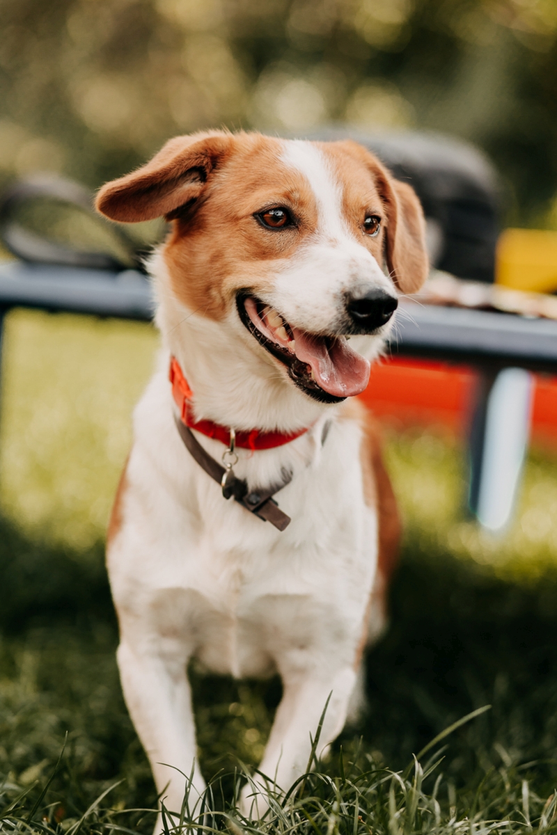 Gumiś trafił do nas jako bardzo zlękniony psiak, na zdjęciu z przyjęcia ze strachu nie był nawet w stanie stanąć na łapkach, kulił się przerażony nową sytuacją, ale praca i determinacja opiekunów zaowocowała w efekty. Jesteśmy przekonani, że jeśli na swojej drodze spotka ludzi, którym zaufa postanowią, to za daną mu szansę odwdzięczy się Wam ogromną miłością i czułością. Gumiś jest zainteresowany smaczkami i zabawkami, więc jest to dobry kierunek, by w odpowiednim momencie wykorzystać ten fakt do dalszej pracy nad jego umiejętnościami, wciąż je doskonali, ale już teraz możemy pochwalić go za postępy. Potrafi chodzić na smyczy i pokazuje to na każdym wolontariacie nawet z namłodszymi.