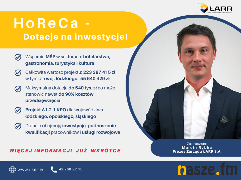 Marcin Rybka Prezes Zarządu ŁARR S.A. zaprasza do skorzystania z nowego projektu HoReCa