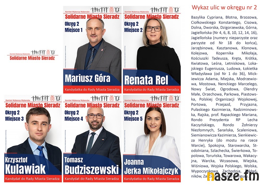 - Zrealizujemy wszystko o czym mówimy, bo dotąd tak robiliśmy. Nie wszystko od razu, ale nawet kino, które zapowiadałem - dzisiaj staje się faktem. Znowu zapraszam na stronę solidarnemiastosieradz.pl. Tam oprócz wyciągu z najważniejszych tez naszego programu znajdziecie rozwiązania proponowane przez każdego z kandydatów na radnych. To są różne rzeczy. Od miejskich toalet, po działania artystyczne czy zmiany w obrębie konkretnych osiedli jak Monice, Zapusta czy Woźniki i Męka. Prezentujemy przede wszystkim te projekty, na które mamy już plany i konkretne finansowanie. Żeby była jasność - to nie obietnice. Mamy pieniądze i projekty na: kompletną rewitalizację Parku Staromiejskiego, Bulwarów Sieradzkich oraz budowę kompleksu ścieżek rowerowych na terenie Sieradza. Unowocześnimy place zabaw i już istniejące miejsca spotkań jak Park Klonowe, stworzymy tężnie i ciekawe miejsca do gry chociażby w tenisa stołowego na zewnątrz. Będą też korty tenisowe i to w centrum miasta. To są fakty - nad tym pracujemy cały czas, nie tylko, żeby stworzyć takie projekty, ale także znaleźć na nie pieniądze i to niekoniecznie w kieszeniach mieszkańców. Zbudujemy pełnowymiarową halę sportową w centrum miasta i drugą nieckę basenu krytego oraz wyremontujemy kolejne kilometry dróg i pomożemy zainstalować kolejne niskoemisyjne źródła energii. Poza tym każdy z kandydatów reprezentuje inne środowisko i idzie do rady, by przypilnować czegoś konkretnego i stworzyć coś konkretnego, co ujął w swoich osobistych programach wyborczych, jakie znajdziecie na solidarnemiastosieradz.pl.