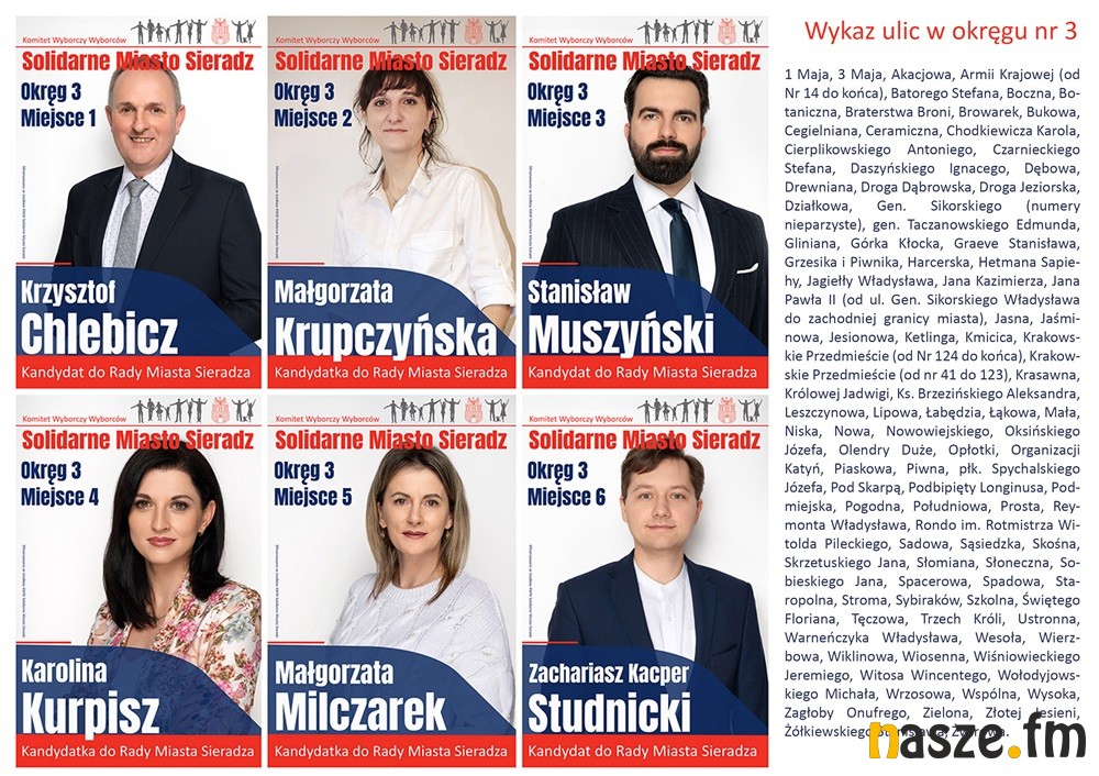 Co nas wyróżnia? Nie należymy do żadnej partii i nie mamy w obowiązku pilnowania jej interesu. Ale mamy obowiązki względem miasta. I to one sprawiają, że potrafimy pracować z każdym, komu na względzie jest nasze miasto, nawet jeśli ktoś chce nam przypiąć polityczną plakietkę. Na stronie www.solidarnemiastosieradz.pl znajdziecie twarze Solidarnego Miasta Sieradz i program wyborczy oraz propozycje każdego z kandydatów. Mieszaninę temperamentów, doświadczeń, zaangażowania i przede wszystkim pasji. Jestem dumny, że mogę być częścią tej drużyny - dodaje Paweł Osiewała. Zapraszam na wybory i proszę o rzetelną ocenę działań i projektów. Kilka chwil jakie poświęcicie na analizę programu wpłynie na Wasze wybory. Wybory przyszłości miasta Sieradza.